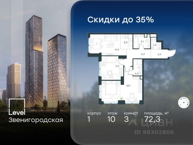 Однокомнатная квартира площадью 64,6 кв.м. на 9 этаже дома бизнес-класса "CRYSTAL Трилогия". Жилой комплекс CRYSTAL Трилогия комфорт в сердце Хорошево-Мнёвников Удобное расположение и транспортная доступность CRYSTAL Трилогия расположен в престижном районе Хорошево-Мнёвники, на улице Генерала Глаголева, всего в нескольких минутах от живописного Серебряного бора и набережной Москвы-реки. Из окон открываются панорамные виды на воду и зелёные зоны, создавая ощущение гармонии с природой. Автомобильная доступность • Звенигородское шоссе и проспект Маршала Жукова быстрый выезд в любую часть города. • 7 км до ТТК, 9 км до МКАД, 10 км до Садового кольца. • Общественный транспорт: • Ближайшая станция метро "Народное ополчение" (2 км). Добраться можно пешком или на автобусе. • В пешей доступности строятся 3 новые станции метро, что повысит транспортную связанность района. Инфраструктура: всё для жизни в шаговой доступности Комплекс входит в состав масштабного квартала Union Park (40 га) это современная городская среда с продуманной инфраструктурой. Образование и развитие: • Лучшие школы Москвы: 1515, 1517, 138, Курчатовская школа. • Детские сады: "Wow Kids Серебряный бор", логопедический "ДАРвиль". • Музыкальная школа им. В. В. Андреева. Медицина и спорт: • Поликлиника "Семейный доктор", медцентр "Мед-Лайт", стоматология. • Спорткомплекс "Серебряный" с бассейном, тренажерным залом и солярием. Магазины и рестораны: • Премиальные магазины: "Азбука вкуса", "ВкусВилл", "Лента", "Магнолия". • Рестораны и кафе: Asia Inn, Wells Home Cafe, рыбный ресторан The Mope. Футуристичная архитектура с продуманным комфортом CRYSTAL Трилогия это уникальный дизайн и эргономичные планировки: Внешний облик: • Кристаллическая архитектура с панорамными эркерами и фасадами в оттенках горького шоколада. • Трехуровневая структура, где на верхнем ярусе вы увидите геометрические эркеры с панорамным остеклением, на среднем уровне расположены квартиры с окнами на 1-2 стороны, а на нижнем отделка австрийским клинкерным кирпичом. Внутреннее пространство: • Светлые входные группы с лаунж-зонами для отдыха и мероприятий. • Подземный паркинг (по машиноместу на квартиру) и кладовые для хранения. • Закрытые дворы с спортивными зонами: • Теннисный корт. • Площадки для воркаута. • Беговые дорожки. • Поле для игровых видов спорта. Квартиры с продуманными планировками • 14 комнатные варианты. • Высокие потолки и панорамное остекление для максимальной инсоляции. • Ровные стены и черновая/чистовая отделка на выбор. • Готовые решения для комфортного заезда.
