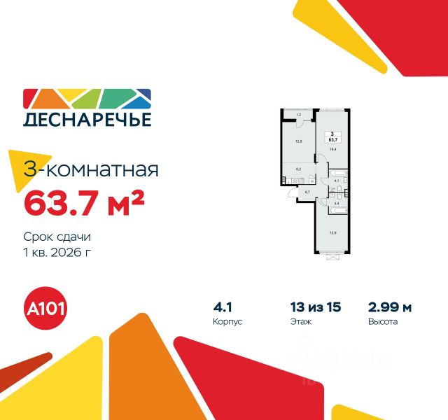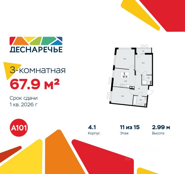 Продается 3-комн. квартира, без отделки в ЖК "Новые Ватутинки. Квартал у реки". Общая площадь: 67.8 кв.м., жилая: 41.0 кв.м., площадь кухни: 6.6 кв.м. Этаж: 7. Район расположен всего в 14 километрах от МКАД по Калужскому шоссе, в центральной части Новой Москвы. Добраться сюда можно на автобусах и маршрутках от станций метро "Ольховая", "Теплый Стан" и "Бульвар Адмирала Ушакова". Время в пути от "Теплого Стана" и "Ольховой" занимает в среднем до 20 минут, даже в часы пик. В 2025 году рядом начнется строительство новой станции метро "Десна" (Троицкая линия), которая будет находиться в пешей доступности. Благодаря удачному расположению и развитой инфраструктуре Новые Ватутинки становятся одним из культурных и образовательных центров Новой Москвы. Строительство нового микрорайона началось с трех жилых корпусов, оснащенных подземными паркингами, индивидуальными кладовыми и коммерческими помещениями на первых этажах. Заречный имеет два удобных выезда на Калужское шоссе, что обеспечивает свободный проезд без заторов. В будущем жители также смогут пользоваться станцией метро "Десна", выбрав общественный транспорт. В районе предусмотрено строительство двух образовательных комплексов с детскими садами и школами, поликлиники и торгового центра Сквозь весь микрорайон — от будущей станции метро до набережной и парка "Андерсен" — протянется пешеходный бульвар длиной 1,5 км с уютными скверами, мини-площадями и садами. Архитектурная концепция предусматривает постепенное снижение этажности ближе к бульвару, создавая приятную для жизни и прогулок городскую среду. Принцип "город в гармонии с природой" реализован через дворы без машин и безбарьерное пространство на всей территории. Внутренние дворы будут предназначены для тихого отдыха и детских игр, а активные зоны разместятся на крупных плейхабах и в общественных пространствах. "Андерсен" станет центром активного досуга: здесь запланированы вело- и пешеходные маршруты, спортивные площадки, зоны для индивидуальных тренировок на свежем воздухе, а также места для рыбалки, сапбординга и тюбинга. Квартирный фонд отличается разнообразием планировок и продуманной эргономикой: просторные квартиры, большие лоджии, по две ванные комнаты. Свободные планировки позволят легко зонировать пространство под личные нужды — создать уютную спальню, рабочее место или гостиную. В цокольном этаже предусмотрены кладовые для хранения сезонных и крупных вещей, а также подземный паркинг с индивидуальными и семейными машино-местами. Спуститься к автомобилю можно прямо из квартиры — на лифте. Проект включает систему видеодомофонии: жители смогут получать уведомления о визитах гостей в режиме онлайн, открывать входную дверь удалённо, сохранять снимки с панели вызова, а также при желании — подключить наблюдение за камерами в лифтах через мобильное приложение. Выдача ключей в 2027г.