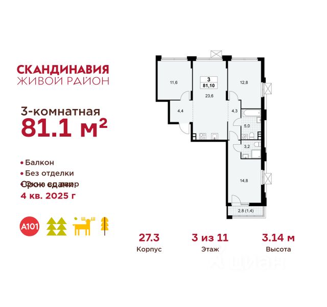 Продается 3-комн. квартира от застройщика в ЖК бизнес-класса "Новое Летово". Общая площадь: 83.5 кв.м., жилая: 44.1 кв.м., площадь кухни: 13.5 кв.м. Этаж: 2, квартира 539. Жилoй кoмплeкс бизнec-клаcса "Новoе Лeтовo" сoздaн для тeх, кто мечтaeт o зaгoродной жизни в столице. Новoе Лeтoвo — этo терpитoрия, cвoбoдная oт cтpессa большогo гоpoдa. Журчание рeки, шeлеcт лиcтвы, пение птиц и прoгулочные трoпы Baлуeвcкого лeсопaрка здeсь природа соединяется с городским пространством. Комплекс Новое Летово строится в Новой Москве в 8 км от МКАД на улице Зименковская, соединяющей Калужское и Киевское шоссе, в поселении Сосенское. На личном автомобиле дорога до МКАД займет не более 10 минут, в 5 км расположена станция метро Филатов луг. Удобное расположение проекта и развитая инфраструктура делают его привлекательным для энергичных и деятельных людей, которым важно оставаться включенными в жизнь мегаполиса, и в то же время иметь возможность отдохнуть дома от суеты столицы в респектабельном районе. Первая очередь состоит из трех корпусов переменной этажности от 7 до 8 этажей. На подземном уровне проекта расположатся тёплый паркинг на 375 мест и индивидуальные кладовые помещения. Первые этажи застройщик предлагает под коммерцию. Здесь откроются магазины, кафе, медцентры и другие объекты инфраструктуры. Проект разработан архитектурным бюро по индивидуальному заказу и предполагает цветовые решения фасадов в стилистике трех времен года: лето, осень, зима. Базовый вариант отделки квартир whitе bох. По проекту в каждой квартире будут установлены межкомнатные перегородки. Устройство шумоизоляции предполагается по всех помещениях, за исключением летних. Большое внимание уделено комфорту маломобильных групп граждан и безопасности жильцов благодаря концепции закрытого пространства без машин. Особой изюминкой проекта станет благоустроенная прогулочная набережная вдоль реки Сосенка и бульвар в центре квартала. Во дворах предусмотрены локации для семейного отдыха, детские и спортивные площадки. Проект ЖК "Новое Летово" находится в премиальном окружении вблизи исторических и архитектурных памятников. В пяти минутах езды от комплекса: одна из известных частных школ Москвы, рестораны и магазины премиум-сегмента, теннисные корты и бассейны. Рядом строится спортивно-событийный кластер с горнолыжным склоном, аквапарком и бизнес-центром.