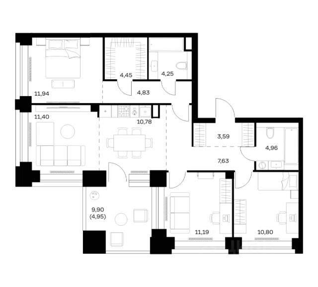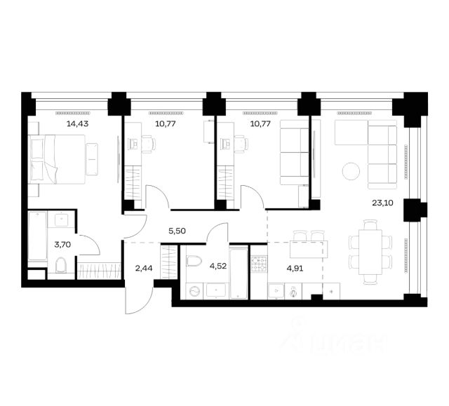Комфортная и продуманная до мелочей 3-спальная квартира площадью 91.50 кв. м на 9 этаже в клубном доме 8. Увеличенная площадь окон и высота потолков 3.13 м дарят впечатляющие виды на парки, зеленые зоны и природные заказники. West Garden - это собрание клубных домов высотой 12-14 этажей в собственном парке 16 гектаров вдоль реки. Просторный среднеэтажный квартал расположен на Минской улице, в респектабельном Западном округе столицы. Вокруг премиальное окружение и более 1000 гектаров парков. West Garden - это возможность обеспечить себе и своей семье лучшие условия для жизни в одном из самых привлекательных и зелёных районов столицы. Гармония природы дополнена здесь впечатляющими возможностями и привилегиями: • Расположение в зелёном Западном районе столицы вблизи центра и ключевых магистралей в окружении парковых зон (заказник "Долина реки Сетунь", Мосфильмовский пруд, Ботанический сад МГУ, природный заказник "Воробьёвы Горы", Парк Победы на Поклонной горе) • Современная лаконичная архитектура, у каждого дома свой индивидуальный облик и выразительный фасад с использованием натуральных и долговечных материалов (гранит, известняк, клинкерный кирпич) • Функциональные лобби с отделкой из дерева и натурального камня с высокими потолками до 7,8 м • Самый большой собственный парк для прогулок и отдыха: 8 га собственной закрытой и благоустроенной территории, а также 8 га прилегающего парка на набережной с зонами отдыха с шезлонгами, маршрутами для бега, пеших и велосипедных прогулок • Инфраструктурный центр Clubhouse только для жителей: клубная гостиная с террасой и творческой атмосферой по фирменному стандарту Friend`s Lab, детская игровая зона 300 кв. м по стандарту Kid`s Lab • Насыщенная и разнообразная инфраструктура для детей любого возраста: 8 развивающих детских площадок в парке, 3 детские площадки на благоустроенной набережной, площадка для отдыха и досуга подростков • Спортивная инфраструктура по стандарту Fit Lab: многофункциональные площадки для футбола, баскетбола, волейбола с трибуной для болельщиков, зона воркаута, теннисные столы, зона для йоги, беговая дорожка 3 километра, фитнес-центр только для жителей • Комфортный и просторный подземный паркинг на 1313 машино-мест, 482 келлера, автомойка только для жителей на четыре поста
