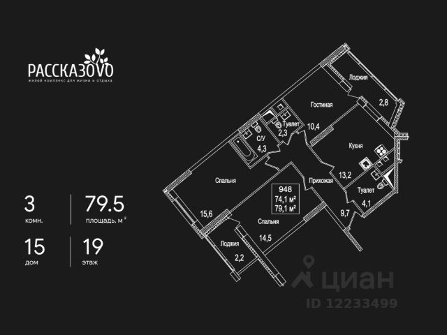 Продается 3-комнатная квартира в ЖК Рассказово на 12 этаже. Общая площадь квартиры составляет 77,4 кв.м. Квартира без отделки. Уникальность комплекса в его архитектуре все дома построены в стиле Москвы 30-х годов, создавая неповторимое ощущение присутствия романтики того времени. Роскошные входные группы, отделанные мрамором, с высотой потолков 4,5 м, белыми лепными карнизами и стойкой ресепшн с авторской отделкой создают атмосферу уюта, полностью отражая дух и воплощение уникальной архитектурной концепции 30-40 годов, являясь ее логическим продолжением. Преимущество локации заключается в благоприятной экологической обстановке с трех сторон комплекс окружен Ульяновским лесопарком и отсутствием промышленных предприятий, обеспечивая жителей чистым воздухом. До ближайшей станции метро "Рассказовка" всего 850 метров, а до центра можно доехать за 30 минут. Проект предполагает комплексное освоение территории, создание комфортной жилой застройки с развитой качественной инфраструктурой: - большое количество парковочных мест предусмотрены как закрытые подземные паркинги, так и крытые наземные парковки с дополнительно выделенными открытыми парковочными местами возле домов; - круглосуточно охраняемая территория, закрытая от посторонних для безопасности каждого жителя; - двор-парк без машин, где можно не переживать за играющих детей; - социальные объекты: своя поликлиника, детские сады и школы; - здоровая среда: воркаут - площадки, обустроенные места для занятий спортом на свежем воздухе, живописные места для утренних пробежек, велосипедные маршруты любой сложности; - благоустроенная набережная лесного озера для тихих прогулок или семейного отдыха; - коммерческие объекты действующие магазины, кафе и салоны красоты. Узнайте больше о комплексе приезжайте на просмотр, записавшись по телефону. Менеджер вас встретит, угостит вкусным кофе, проведет по территории и покажет квартиру.