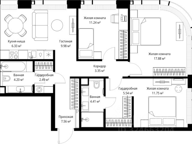 Старт продаж новой очереди! Продаётся 3-комнатная квартира общей площадью 80.88 м² без отделки в ЖК VEER на 21-м этаже 70 этажного дома. VEER.2 — вторая очередь футуристичного квартала бизнес-класса VEER. Это новая экосистема в престижном Западном округе Москвы, поражающая масштабностью внутренней инфраструктуры. ЖК находится всего в 5 минутах от Кутузовского проспекта и в 15 минутах от Сколково. Ансамбль из четырех стеклянных башен с доминантой в 237 метров разработан по принципу современного урбанизма и выражен в лаконичных объемах — параллелепипедах со сглаженными углами, которые придают зданиям утонченный вид. Расположение и транспортная доступность: • Образовательный комплекс в составе топовой школы, состоящий из двух зданий: основное на 1500 школьных и 450 дошкольных мест, отдельное здание детского сада на 300 мест. • Парк "Долина реки Сетунь" площадью более 700 гектаров • Рядом МГУ, МГИМО, РАНХиГС и Академия ФСБ • 15 минут по Кутузовскому проспекту до ужина в центре с видом на Москву-реку • 18 минут пешком до м. "Давыдково" • Открытие новых станций метро в шаговой доступности в будущем Инфраструктура: Двор в VEER.2 — это ассиметричные холмы, каменные "лабиринты", зеленые ковры и хвойные островки с единой живой экосистемой. Здесь есть все: • Павильон умиротворения Место отдыха под навесом в спокойной части двора, окруженное деревьями. • Активная тропа Тактильная дорога из камней разного диаметра для расслабляющих прогулок. • Бизнес-гарден Оборудованное пространство для работы на свежем воздухе со столом и встроенными розетками. • Детская площадка Двухуровневая площадка "Ботаника" с песочницей, переговорной трубой и горкой "Дружба". Компания MR предлагает своим клиентам специальные условия приобретения квартир в рамках программ ипотечного кредитования от банков-партнеров.