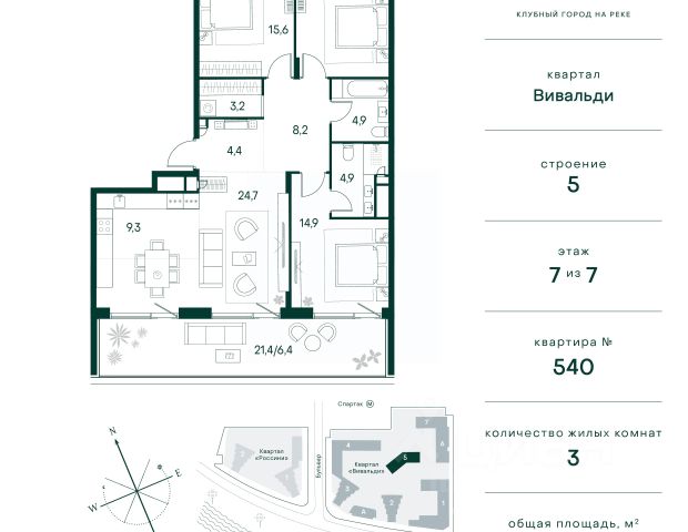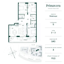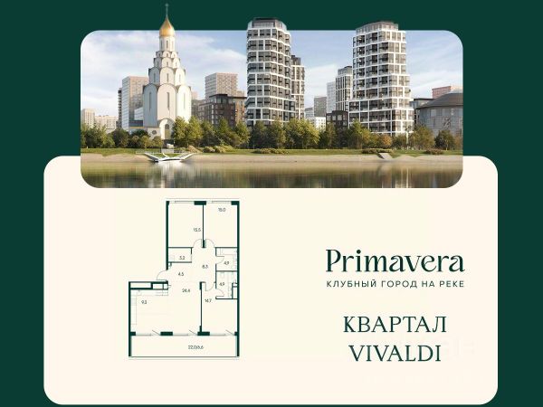 Клубный город на реке Primavera — это современный жилой комплекс премиум-класса, расположенный на первой береговой линии Москвы-реки в экологически чистом районе Покровское-Стрешнево. Под панорамными окнами квартир находится собственный экопарк с продуманной сетью прогулочных дорожек и современными детскими и спортивными площадками. За парком расположена набережная с собственным пляжем и зонами для отдыха. Клубный город на реке Primavera предлагает широкий выбор планировок для различных жизненных сценариев: от просторных однокомнатных квартир до пентхаусов и жилых помещений с террасами и патио. Выберите из 120 вариантов эргономичных планировок стандартного и евроформата. Из каждой квартиры открываются красивые виды на реку с углом обзора в 270 градусов. Дизайнерские лобби предлагают панорамный обзор на благоустроенный двор. Высокие потолки в 6 метров и качественная отделка создают атмосферу, схожую с пятизвездочными отелями. В Primavera есть всё необходимое для комфортной жизни в мегаполисе: • Образование для детей в шаговой доступности: 4 школы, 8 детских садов и развивающие центры с кружками и секциями. • Удобства на расстоянии приятной прогулки: супермаркеты, кафе, рестораны с верандами, салоны красоты, аптеки и многофункциональный центр для шоппинга и развлечений. • Умный дом: автоматизированное бесконтактное управление основными системами доступа и безопасности через мобильное приложение. Клубный город на реке Primavera выгодно сочетает комфорт городской жизни с близостью к природе. Живите в месте, где все создано для вашего удобства!