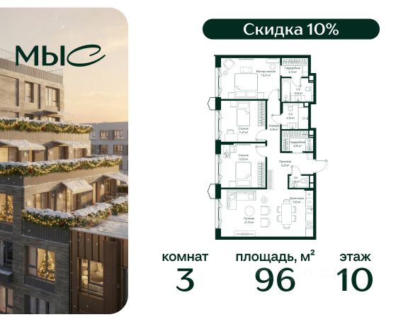 Прямая продажа от застройщика. Продаётся 3-комнатная квартира общей площадью 104.93 м² без отделки в премиальном жилом комплексе "МЫС" на 7-м этаже 12 этажного дома. Квартира расположена в корпусе "Волга". Проект МЫС — это, прежде всего, идеальное место для семей. В рамках проекта построят государственную школу, два детских сада и дворец спорта площадью 20 000 м2 с термальным комплексом, выплывным бассейном, фитнес-залом, теннисными, сквош и падел кортами и секциями для детей. На территории площадью, сравнимой с тремя парками Зарядье, появятся кафе и рестораны, пруд с набережной, спортивные и детские площадки, скейт-парк, лыжные и веломаршруты. Расположение: - 2 минуты до скоростной трассы М1 и Минского шоссе; - 10 минут до МКАД; - 15 минут до МЦД Лесной Городок - 20 минут до делового центра "Москва-Сити"; - 28 минут до аэропорта "Внуково". Благоустройство: - велосипедные и лыжные маршруты; - собственная набережная и парк; - лаунж-зоны в окружении природы; - беседки у очага; - дворец спорта площадью 20 000 м²; - термальный комплекс с тремя бассейнами; - 4 теннисных и падел-корта; - 6 сквош-кортов; - многофункциональный спортзал; - скейт-парк; - просторная площадь для прогулок с фонтаном; - детский клуб с творческими секциями; - гастро-доминанта; - кафе у пруда, рестораны, ритейл. Окружение - соседство с лесным фондом; - школа на 1250 мест и 2 детских сада на 350 и 255 мест; - Дубковский и Подушкинский леса, парк "Рассказовка", Мещерский парк. Действуют специальные условия при 100% оплате, подробности уточняйте у менеджера в офисе продаж.