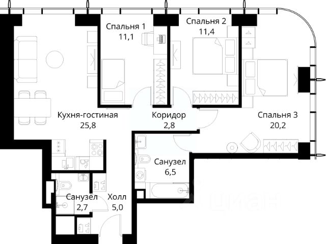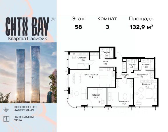 Продаётся 3-комнатная квартира 74 м². В жилом районе Алиа на 26-м этаже 28-этажного дома. Жилой район Алиа — это дома бизнес-класса у слияния Москвы-реки и Сходни. Алиа находится в Покровском-Стрешневе, экологически чистом районе на престижном северо-западе столицы. Район возводится на бывшей территории Тушинского аэрополя, где никогда не было промышленного производства. Алиа — это район разностороннего развития, спроектированный по принципу WORK.LIVE.PLAY.LEARN. Это "15-минутный город", где вся необходимая для комфортной жизни инфраструктура — на расстоянии приятной прогулки. У района удобное расположение: отсюда меньше 10 минут пешком до станций метро "Спартак" и "Тушинская" и всего полчаса на автомобиле до центра города или аэропорта Шереметьево. Архитектурную концепцию Алиа разработало бюро SOM (Skidmore, Owings & Merrill), авторы знаменитой "Бурдж-Халифа". В Алиа больше 140 планировочных решений, среди которых — редкие для Москвы форматы: квартиры с окном в ванной, пентхаус, сити-юниты и таунхаусы. Почти половина территории района отдана под благоустройство. В Алиа три парка: Линейный парк с кафе и магазинами, Центральный парк с амфитеатром, сухим фонтаном и большим плейхабом для детей всех возрастов и Прибрежный парк на собственной набережной, одной из самых длинных в Москве. В каждом урбан-блоке — закрытый внутренний двор с гипоаллергенными растениями и детской площадкой. В лобби каждого жилого корпуса в Алиа оборудована зона ожидания, колясочная, гостевой санузел и лапомойка для домашних животных. За стойкой ресепшена резидентов и их гостей встречает консьерж. Центральное лобби урбан-блока — это стильное общественное пространство с коворкингом, лаундж-зоной и кофе-пойнтом. Это "вторая гостиная" жителей урбан-блока и одно из мест, где формируется комьюнити Алиа. Два ключевых объекта инфраструктуры в Алиа — это спорткомплекс "Чкалов Арена", где представлены 25 видов спорта, и самый большой в стране бизнес-парк класса A, благодаря которому району обеспечено быстрое развитие.