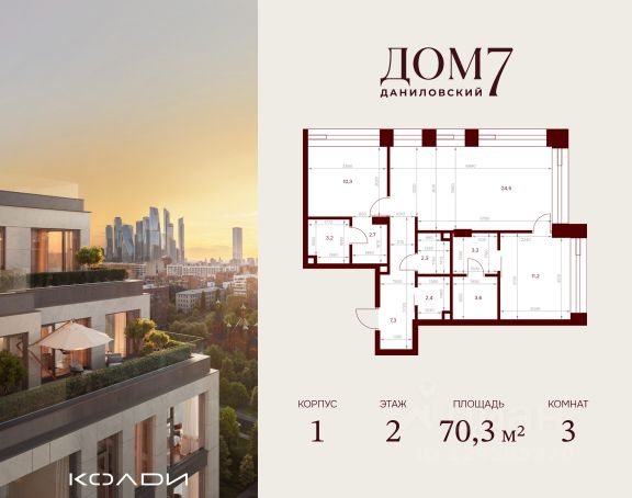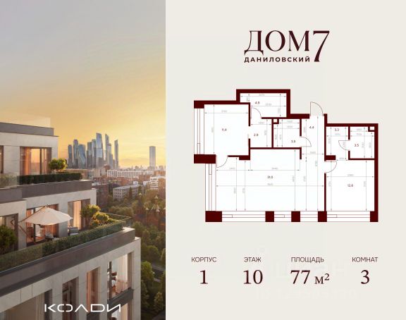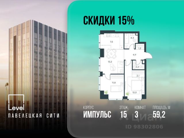 В Даниловском районе столицы (ЮАО) продаётся 3-комнатная квартира площадью 56.80 кв.м без отделки. Квартира расположена на 2 этаже 45-этажного корпуса 'Горизонт' в жилом комплексе бизнес-класса Павелецкая Сити. Высота потолков 3.00м.