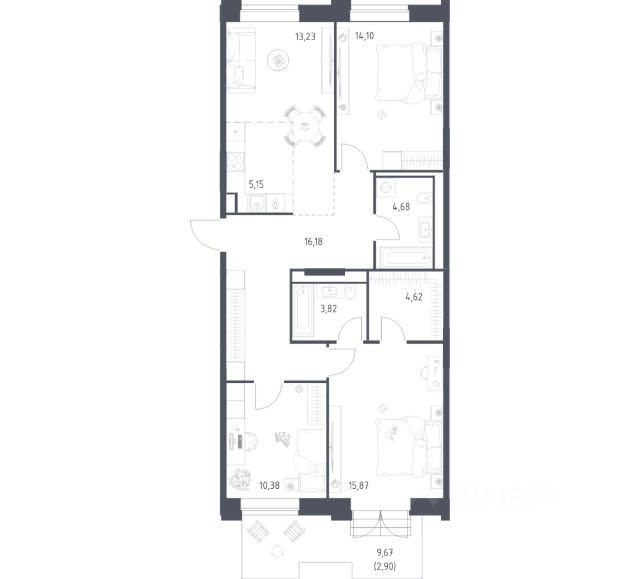 Продается просторная квартира площадью 98,5 м² в башне "Гармония" клубного дома "Кутузов Сити". Функциональная планировка квартиры идеально подойдёт для большой семьи. В квартире две изолированные комнаты, одна из которых — мастер-спальня с отдельной ванной, гардеробной и выходом на просторную террасу. На террасе можно организовать зону отдыха, площадку для завтраков, место для прогулок с коляской или работы в теплое время года. Кухня-столовая — это сердце дома, где удобно готовить и вместе собираться за обеденным столом. В просторной прихожей предусмотрена гардеробная и второй санузел. Большие окна во всей квартире наполняют комнаты естественным светом и делают солнце частью интерьера. Высокие потолки придают пространству ощущение свободы и лёгкости. Продуманная планировка позволяет эффективно использовать каждый квадратный метр. О проекте: "Кутузов Сити" — клубный дом на 220 квартир, разработанный совместно с бюро Atrium и Oleg Klodt Architecture & Design. Проект строится в престижном Западном административном округе Москвы, всего в нескольких минутах ходьбы от Кутузовского проспекта. Закрытая территория, приватный двор, подземный паркинг и стильные лобби создают атмосферу комфорта и безопасности. В двух шагах от дома находится крупнейшая природная территория Москвы — природный заказник "Долина реки Сетунь". Камерная застройка и развитая инфраструктура делают "Кутузов Сити" отличным выбором для тех, кто ценит качество жизни и близость к природе. (Лот: 44) Купить 3-комнатную квартиру от застройщика в районе Можайский в Москве.