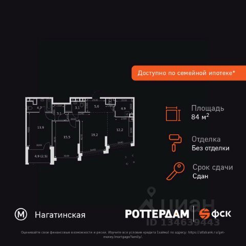 Прямая продажа от застройщика! Жилой Комплекс бизнес-класса на набережной возле Нагатинского причала. Продаётся 3-к квартира номер 13 общей площадью 77.9 кв.м. на 4-м этаже 20 этажного здания. Без отделки. Цена с учётом скидки. Особенности квартиры: - Организуем показ в удобное для вас время! - Мастер-зона с санузлом и гардеробной. Всё для вашего комфорта и удобства, включая личный санузел и гардероб. - Линейная планировка - максимальная функциональность и удобство. - Угловая планировка - больше пространства для ваших идей. - Увеличенное количество окон - дополнительное освещение и свежий воздух. - Угловое остекление - свет и воздушность в каждой комнате. - Гостевой санузел - комфорт и удобство для ваших гостей. - Душ помимо ванной - дополнительное удобство для вашей семьи. - Ниша под стиральную машину - удобство и экономия пространства. - Евроформат - просторное и удобное жилье с отличной планировкой. - Гибкая планировка - создайте пространство по своему вкусу. - Место для игры/занятия спортом - идеальное пространство для активных детей. - Просторная мягкая зона - комфорт и уют для отдыха всей семьи. - Гардеробная - удобство для хранения и организации вещей. Квартира без отделки. Чистый холст для воплощения интерьера вашей мечты. Информация о комплексе: ЖК "Роттердам": идеальная транспортная доступность для любого настроения. Пешая доступность до метро, удобный выезд на Варшавское шоссе к ТТК и Садовому кольцу, а также живописная Нагатинская набережная с маршрутом до Кремля. Выбирайте метро, автомобиль, трамвай или велопрогулки вдоль реки - всё под рукой. Транспортная доступность: Всего в 5 минутах пешком до метро Нагатинская и 8 минутах от МЦК Верхние Котлы. Рядом Аэроэкспресс до метро Домодево. До ТТК 2,2 км и 4,9 км до Садового кольца. Внутренняя инфраструктура: ЖК "Роттердам": идеальный баланс работы и отдыха на Нагатинской набережной. Коворкинги, детские площадки и игровой центр для всей семьи. Рядом - 5 парков, спортивные и деловые центры в шаговой доступности. Архитектура сочетает высотные и малоэтажные здания без ощущения "каменных джунглей". Панорамные виды из окон верхних этажей и прямой выход к Москве-реке. Уединённость, безопасность и комфорт для тех, кто ценит личное пространство и время. Квартира без отделки - чистый холст для вашего интерьера.