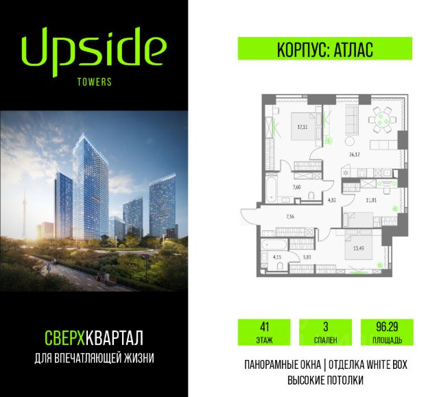Продаётся 3-комнатная квартира площадью 85.36 кв.м на 3 этаже 46 этажного корпуса Монте Бьянко в квартале небоскребов "Upside Towers". В квартире отделка White-box, c видом на Корпус Олимп, корпус Эльбрус, Бизнес-парк Останкино, прогулочный бульвар, детский сад, школу. Номер квартиры Г0313. Upside Towers - технологичный квартал строится в динамично развивающемся Бутырском районе, в 3 мин. от метро, в 5 мин. от ТТК. На территории 7 га возводится 5 высотных башен от 19 до 58 этажей, названных в честь главных вершин земли. Квартиры с панорамными окнами в пол, высокими потолками и современными инженерными решениями. Благоустроенная зеленая территория включает: приватные дворы, природный комплекс, прогулочный бульвар, ландшафтный парк 2,5 га с сенсорным садом и многофункциональными игровыми и спортивными площадками. В корпусе откроется смотровая площадка для резидентов с панорамными видами на город, парки, Останкинскую башню, ВДНХ, Ботанический сад и Москву-Сити. На первых этажах корпуса Монте Бьянко разместятся: фитнес студия, салон красоты, центр превентивной медицины, образовательные классы, книжный магазин, аптека, фермерская лавка, а также келлеры для хранения сезонных вещей. В приватном закрытом дворе разместятся разнообразные площадки для прогулок, игр и отдыха. Визитной карточкой двора станет уникальная биометрическая игровая пещера со сказочными тоннелями, горками и космическими "мягкими" камнями с неизведанных планет. Планету Земля дети смогут исследовать в павильоне круглый год: объемная крыша укроет от солнца и дождя. Игровая пещера будет реализована в стиле "эмоциональная архитектура". Большое внимание в проекте уделяется созданию социальной инфраструктуры. В стилобатной части, между корпусами "Атлас" и "Олимп" разместится уникальное пространство закрытый клуб для жителей квартала Upside Club площадью 2 000 кв. м. Здесь разместятся: каминный зал с роялем, многофункциональная детская зона c двухуровневым игровым оборудованием для малышей и дошкольников, плей-рум для подростков, домашний кинотеатр, коворкинг, переговорные и лектории. На 47 этаже башни "Атлас" откроется SKY SPA Relax с расслабляющей атмосферой, джакузи, сауной, залами для релаксации и йоги. Собственники квартир смогут в любое удобное для них время забронировать посещение спа-зоны через смарт-приложение. На крыше стилобата разместится всесезонная BBQ патио-зона с верандой и закрытыми помещениями для приготовления и отдыха. Покупая квартиру даже самого минимального размера в Upside Towers, вы получаете в пользование 2 000 м² бесплатных общественных пространств. В рамках проекта строится государственная школа и детский сад, разместится более 15 000 кв.м. коммерческой инфраструктуры. Насыщенная социальная инфраструктура формирует множество сценариев для жизни на территории квартала. В Upside Towers применяются лучшие технологии и практики, чтобы обеспечить высшее качество жизни: Воздух, не уступающий по качеству горному, обеспечит приточно-вытяжная вентиляция. П 3-комнатная квартира от застройщика на проезде Огородный в Москве.