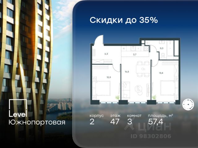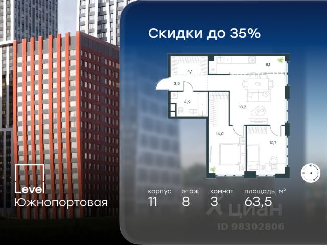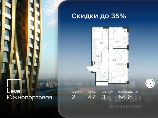 В динамично развивающемся районе Москвы, всего в 300 метрах от метро и в пешей близости от нового городского порта с протяженной набережной 13 км, свободной от автомобилей, продается 3-комнатная квартира площадью 60.00 м². без отделки. Квартира находится в корпусе жилого комплекса бизнес-класса "Адмирал", расположенного по адресу г. Москва, ул. Шоссейная, 4Д. (Застройщик - "Галс Девелопмент"). Новый амбициозный проект "Адмирал" станет частью одного из самых перспективных районов будущего - "Сити-2". В пешей доступности от современных башен Вас ждут живописные Люблинские пруды, 2 усадьбы с уникальной историей и уютный парк "Печатники" у Перервинского плёса. Район имеет отличную транспортную доступность: • 300 метров до станции метро "Печатники"; • Удобная пересадка на БКЛ и станцию МЦД-2; • 10 минут на машине до ТТК; • 15 минут до Садового кольца. Архитектура корпусов отличается динамичностью облика благодаря переменной этажности: высокие башни сочетаются с домами средней этажности. Изящным украшением становятся арочные витражи. Интеллигентный и современный стиль "Адмирала" продолжается в гранд-лобби: пастельные оттенки интерьера и фактурные элементы декора создают атмосферу безмятежного отдыха, особое ощущение простора дарят высокие потолки до 4 м и витражные окна. В домах предусмотрено от трех до шести скоростных лифтов, каждый из них спускается на любой этаж подземного паркинга и обладает удобными сенсорными панелями управления и низким уровнем шума. Благоустроенный двор площадью 5000 кв.м. украсят десятки видов гипоаллергенных растений. Здесь можно совершить приятный променад, по пути заглядывая за свежезаваренным кофе, уединиться за ноутбуком в комфортном коворкинге, занять ребенка играми в двухъярусном плейхабе или помедитировать на специальной площадке для йоги. Мягкий свет декоративных фонарей подчеркнет живописность местности, а чувство безопасности гарантируют круглосуточные системы видеонаблюдения. Дополнительные преимущества: • Высокие потолки от 2,9 до 3,25 м; • Бизнес-центр, школа и детский сад прямо на территории дома; • Подземный двухуровневый паркинг на 1955 машино-мест; • Кладовые помещения в тёплом контуре на 2м этаже; • Стрит-ритейл на первых этажах.