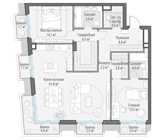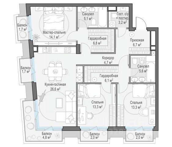 В продаже 3-комнатная квартира квартира в элитном квартале "Тишинский бульвар". Общая площадь квартиры - 151.80 кв.м. Этаж 6 из 6. Корпус К7. "Тишинский бульвар" - тихий зелёный элитный квартал на Тишинке, в престижном и комфортном районе центра Москвы. В нём создан уникальный для элитного дома прогулочный бульвар в своём огромном парке 1,9 га. В парке оборудованы зоны для активного и тихого отдыха, крытые галереи, приватные зелёные комнаты, многофункциональная спортивная площадка, воркаут-зона, детская площадка, сухой фонтан, ручей. В пешей доступности Римско-католический кафедральный собор. Всего в полутора километрах от квартала находятся Патриаршие пруды - излюбленное место для летних прогулок, воскресных бранчей и романтических ужинов. Белая площадь расположена ещё ближе - на расстоянии 1,2 километра. Это точка концентрации деловой жизни и модных ресторанов. В "Тишинский бульваре" только для жителей и их гостей создан уникальный для элитного дома прогулочный бульвар в собственном огромном парке площадью 2,1 га, который занимает 70% территории квартала. Бульвар проходит через весь квартал и объединяет в общее пространство три двора: Кленовый, Рябиновый и Ивовый. В парке созданы крытые галереи и приватные зелёные комнаты для отдыха и медитаций в любую погоду. Насыщенное озеленение многолетними растениями с разными периодами цветения сохраняет территорию квартала красивой круглый год. В квартале насыщенная инфраструктура только для жителей, включая Clubhouse. Здесь оборудованы пространства для здорового образа жизни по стандарту FIT LAB: в парке - многофункциональная спортивная площадка, воркаут-зона, место для занятий йогой и медитации; бесплатный фитнес-клуб с бассейном. Для маленьких жителей доступны детская площадка и игровая комната по стандарту KIDS LAB. Дома оснащены самыми полными и лучшими системами. 3-комнатная квартира от застройщика в районе Пресненский в Москве.
