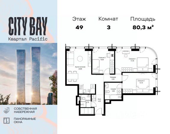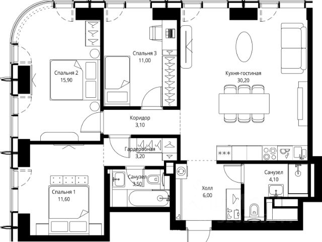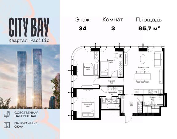 • ✓ В базе Циан 15 3-комнатных квартир от застройщика на проезде Проектируемый № 4089 в Москве