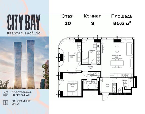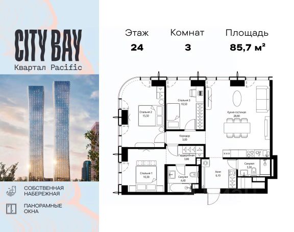 Прямая продажа от застройщика. Продаётся 3-комнатная квартира общей площадью 81.30 м² без отделки в ЖК City Вау, квартале Pacific, на 9-м этаже 59 этажного дома. Концепция жилого комплекса City Вау - настоящий город в городе с отлично развитой инфраструктурой и собственной благоустроенной набережной. На территории жилого комплекса расположено пять кварталов - Atlantic, Pacific, Indian, North, Cliff. Жилой квартал City Вау отличается оригинальной концепцией и выделяется среди других проектов такими характеристиками как: - Архитектура, - Виды из окон, - Природное окружение, вызывая гордость у жителей и восхищение у прохожих. Вся жизнь района Покровское-Стрешнево строится вокруг водных объектов: - Пойма реки Сходни с уникальной экосистемой, - Речка Химка и Химкинское водохранилище, - Москва-река, - Канал имени Москвы. Кругом вода, и местные с удовольствием этим пользуются. А сразу за рекой - центр водного спорта в Строгино с вейк-парком и яхт-клубами. Помимо воды, здесь очень много зелени: - Рядом Сходненский ковш памятник природы, естественный амфитеатр глубиной 40 метров; - Парк при усадьбе Братцево с фруктовым садом; - Дубовая роща "Маяк", - Алешкинский лес; - Лесопарк Покровское-Стрешнево с пляжами и бобрами. Главные транспортные артерии района: - Волоколамское шоссе, - Таганско-Краснопресненская линия метро и МЦД-2. Всего за 20 минут можно добраться до центра на машине или метро, а МЦД связывает ЖК City Вау с северными, восточными и юго-восточными районами. Компания MR предлагает своим клиентам специальные условия приобретения квартир в рамках программ ипотечного кредитования от банков-партнеров.