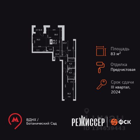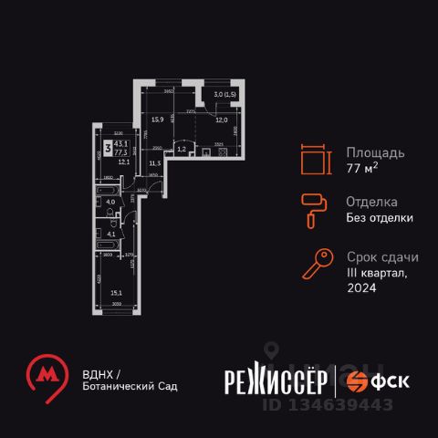 Предлагаем Вашему вниманию просторную четырехкомнатную квартиру площадью 144 м² на 36 этаже в 3-м корпусе. Квартира с частичным ремонтом для большой семьи. В квартире выровнены и оштукатурены стены, потолки, кафель в санузлах. Необходимо только установить сантехнику, положить напольное покрытие, наклеить обои. Из квартиры открывается прекрасный вид на Лосиный остров, а также на Запад и Восток Москвы! Квартира удивляет продуманной планировкой, а наличие панорамных окон и высоких потолков придают дополнительный объем. Функциональная планировка: Просторная кухня - гостиная 55 м² Главная спальня - 27 м² в которой может разместиться двуспальная кровать больших размеров Гостевая спальня 20,5 м² Детская спальня 20 м² В квартире имеется два санузла. А так же просторный хол, где прекрасно впишется большой, вместительный шкаф. Комплекс расположен в экологически чистом районе на территории имеется: детская площадка, детский сад, школа иностранных языков, баскетбольная площадка, кофейня и рестораны, продовольственные магазины: ВкусВилл, Гурман, фитнес клуб World Class, Салоны красоты, Барбер-Шоп TopGun, автомойка, прогулочная зона для домашних животных. Огороженная, охраняемая территория. Вход по пропускам. Видеонаблюдение по всей территории комплекса. Свободная продажа от застройщика Capital Group. Быстрый выход на сделку. Возможна продажа по ипотеке. Продам 3-комнатную квартиру от застройщика в районе Ростокино в Москве.