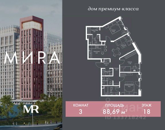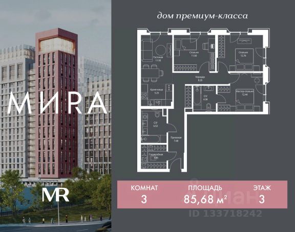 Прямая продажа от застройщика. Продаётся 3-комнатная квартира общей площадью 83.33 м² без отделки в доме премиум-класса МИRА на 4-м этаже 17 этажного дома. Квартира расположена в корпусе 1. Дом премиум-класса МИRA это: • Спокойный район с богатой историей и сложившейся инфраструктурой • Авторская архитектура на стыке классики и современности • Вход в парк прямо из жилого комплекса • Панорамные виды на Яузу, парки, ВДНХ и скульптуру "Рабочий и колхозница" • Удобные сервисы и безопасность для каждого резидента Расположение: Жилой квартал расположен в Алексеевском районе на северо-востоке Москвы, на второй линии домов, таким образом вы сможете дистанцироваться от шума и суеты проспекта Мира, но при этом будете жить недалеко от этой важной городской магистрали. Прямо у дома: • Парк Акведук • Река Яуза • Памятник "Рабочий и колхозница" Пешком: • 16 мин м. ВДНХ На автомобиле: • 12 мин ТТК • 15 мин Садовое кольцо • 12 мин Национальный парк "Лосиный остров" Благоустройство: Концепция благоустройства от бюро "ДРУЖБА" разработана в стиле "Лесная тропа". В уютном дворе расположились словно затерянные в лесу, площадки для отдыха. Они разделяются островками с травами, кустарниками, крупными камнями и деревьями, между которыми проходят узкие песчаные тропинки с деликатной подсветкой по вечерам. Центральной точкой притяжения для жителей станет главная площадь с фонтаном, которая открывается сразу из двух входных групп. Внутренний двор МИRA: • Детская площадка с зонами для игр малышей до трех лет и детей более старшего возраста • Спортивная площадка с профессиональным оборудованием для тренировок • Декоративные перголы • Воздушный арт-объект с подсветкой, похожий на облако • Чайный домик, где в отдельном отапливаемом павильоне можно в любое время года попить кофе с соседями или устроить камерное семейное чаепитие • Зоны для работы и отдыха с гамаком под навесом, скамейками и креслами Инфраструктура и окружение: В Алексеевском районе есть огромные благоустроенные парки, магазины, гимназии с высоким рейтингом и филиалы ВУЗов, частные и государственные детские сады, модные кофейни и фитнес-центры. В квартале МИRА предусмотрены: • 2 ресторана с видом на парк Акведук • 3 кафе • фитнес-студия • подземный паркинг на 330 машино-мест Компания MR предлагает своим клиентам специальные условия приобретения квартир в рамках программ ипотечного кредитования от банков-партнеров. Продам 3-комнатную квартиру от застройщика станция Ботанический сад (МЦК).