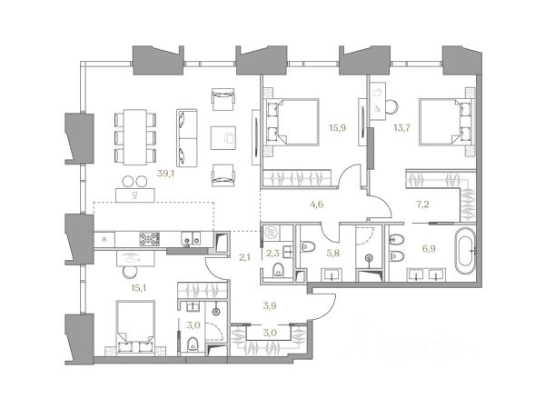 В историческом районе Хамовники продаются 3-к апартаменты площадью 137.50 кв.м, расположенные на 2 этаже делюкс-резиденции Саввинская 27. Преимущества: - 51 апартамент и 10 пентхаусов площадью 83-346 м2 с возможностью перепланировки и объединения; - все апартаменты с видом на Москву-реку; - бассейн 25 метров, тренажёрный зал, зал для занятий йогой и пилатесом; - бизнес-лаундж с отдельными переговорными; - детская комната с выходом во внутренний двор; - зимний сад; - библиотека с настоящим дровяным камином; - салон красоты и спа премиум-класса Mahash Spa; - подземный паркинг на 91 машино-место; - ресторан с летней террасой; - продуманное благоустройство на закрытой территории с охраной и видеонаблюдением, с детской площадкой и местом для тихого отдыха. Расположение и инфраструктура: Дом построен именно в Хамовниках неслучайно, ведь это стиль жизни, к которому вы привыкли: лучшие школы, спортивные секции, места для отдыха, прогулок и комфортная логистика до исторического центра или Москва-Сити. - 2 минуты до Садового кольца и 6 минут до ТТК на машине; - 11 минут пешком до "Лужники"; - 20 минут пешком до станции метро "Спортивная"; - в окружении более 15 детских садов, в том числе 9 частных; - в пешей доступности расположены 11 школ, 4 из которых входят в топ-20 школ Москвы по версии Forbes; - в окружении 5 парков, в том числе парк "Новодевичьи пруды", усадьба Трубецких, парк Горького. Отличная транспортная доступность: Еще одно преимущество резиденции - удобная транспортная доступность. Несмотря на близость к центру, путь на автомобиле до ТТК займет 2 минуты, до Садового кольца 5 минут. В пешей доступности находятся три станции метро: Спортивная, Фрунзенская и МЦК Лужники.