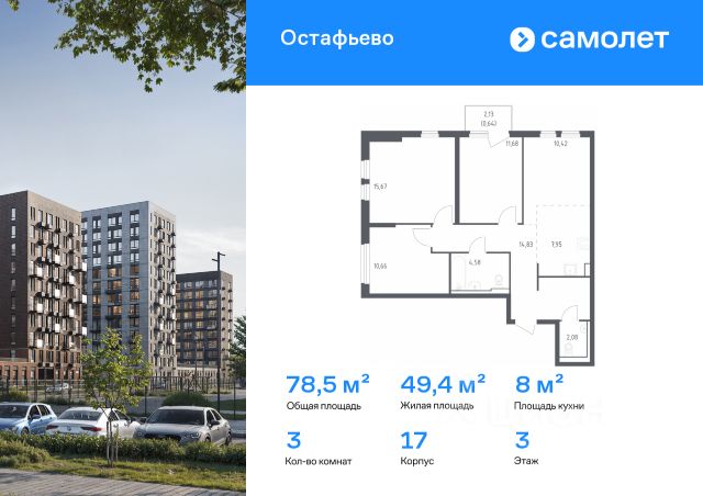 Строим кварталы для жизни с заботой о будущем. Предлагается 3-комнатная квартира комфорт-класса 76,08 кв.м в корпусе 19 на 5 этаже, в ЖК "Остафьево" Квартира без отделки. Доступность опции "отделка" и возможность комплектации мебелью и декором уточняйте у застройщика. Приобрести квартиру возможно по специальным акциям от застройщика, с текущими условиями акций можно ознакомиться в блоке "Акций". Цена динамическая и может отличаться, уточняйте актуальность у застройщика. "Остафьево" — масштабный жилой комплекс в Новой Москве, рядом с одноименным музеем-усадьбой и городским парком "Барыши". До станций МЦД "Щербинка" и "Остафьево" можно добраться на автомобиле за 57 минут. Часть домов уже сдана, на территории открыты две школы и три детских сада, а в будущем будет построена поликлиника, ТЦ, еще одна школа и три детских сада. Все необходимое рядом: на первых этажах домов работают магазины, аптеки и кафе. Дворы — приватные мини-парки без машин и посторонних. Кроме игровых площадок, для детей обустроили тематический плейхаб "Маяк". В будущем появятся плейхаб "Алиса в стране чудес", арт-объект "Тропа зеркал", а также большой ландшафтный парк. В квартале — монолитные дома комфортной высоты, от 10 этажей. Светлые фасады украшают кирпичные вставки в теплых природных оттенках.