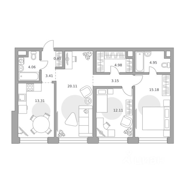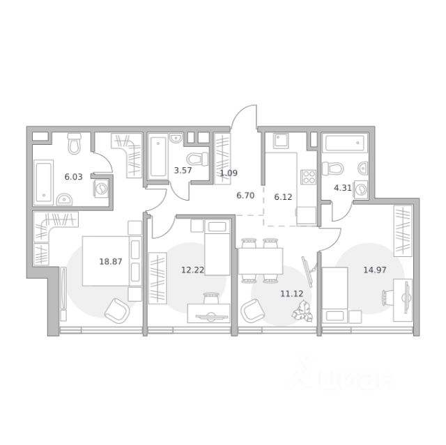 Продаётся 3-комнатная квартира 478, площадью 60,72 м², на 6 этаже в ЖК "Мнёвники от Гранель" корпус 1. Стоимость — от 31724222 руб. Квартира без отделки, планировка угловая, окна во двор.