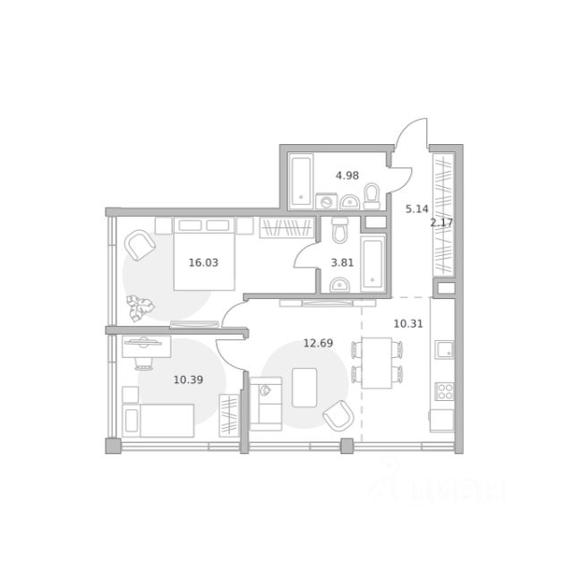 Продаётся 3-комнатная квартира 1031, площадью 85,00 м², на 10 этаже в ЖК "Мнёвники от Гранель" корпус 1. Стоимость — от 44874754 руб. Квартира без отделки, планировка односторонняя, окна во двор.
