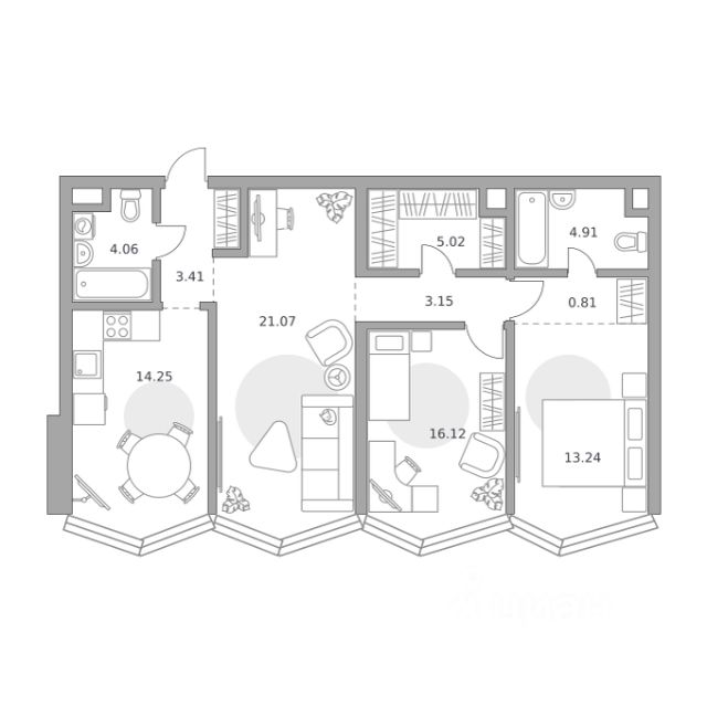 Продаётся 3-комнатная квартира 14, площадью 66,45 м², на 3 этаже в ЖК "Мнёвники от Гранель" корпус 1. Стоимость — от 35372330 руб. Квартира без отделки, планировка угловая, окна на улицу.