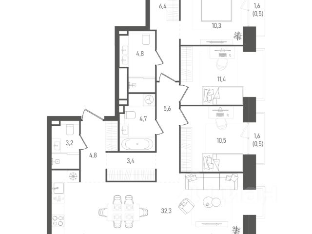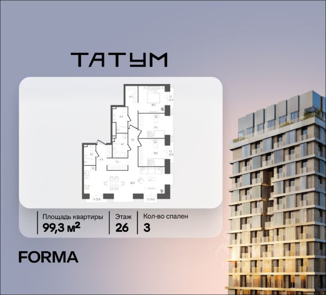 Прямая продажа от девелопера FORMA (без комиссии). Жилой квартал "ТАТУМ" бизнес-класса на Юго-Западе Москвы. О локации: 3 минуты пешком до метро "Калужская" и "Воронцовская". Район окружен зеленью: в пешей доступности 16 парков, включая Воронцовский парк в шаговой доступности. Развитая инфраструктура: 22 школы, 12 престижных вузов, 22 фитнес-клуба и 14 школ большого тенниса, а также конно-спортивный комплекс "Битца". О квартире: Площадь: 105.3 кв. м. Отделка: без отделки (свободная планировка). Вид: 13 этаж 27-этажной башни. О доме и среде: Архитектура квартала — это пять выразительных башен с закрытой территорией без машин. В каждой квартире предусмотрены джамбо-окна и балконы. Внутри квартала создана среда, где комфортно всем членам семьи: прогулочная аллея с ритейлом, дворы без автомобилей, видеонаблюдение на всей территории комплекса и безопасные покрытия. В доме предусмотрена инфраструктура для резидентов: — Коворкинг и общественная гостиная; — Фитнес-зал; — Детская игровая; — Комната матери и ребенка; — Курьерская зона с хранением посылок. Технологии комфорта: Видеонаблюдение по периметру, доступ через смартфон (умный домофон), разовые пропуска для гостей, закрытый паркинг, Wi-Fi в лифтах и паркинге. 3-комнатная квартира от застройщика на улице Обручева в Москве.