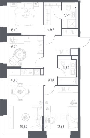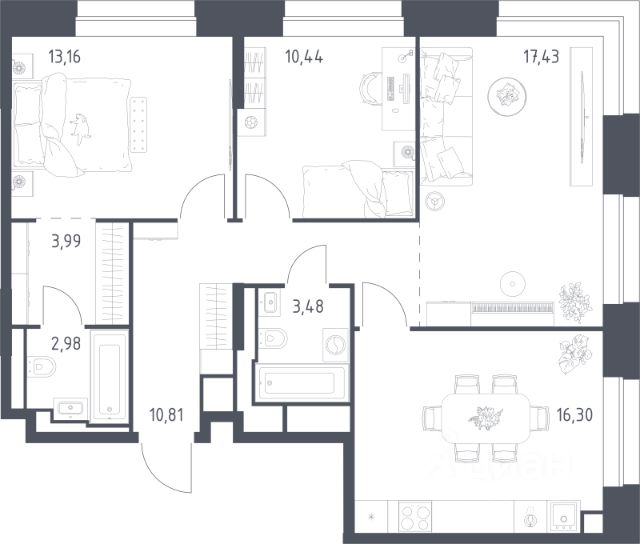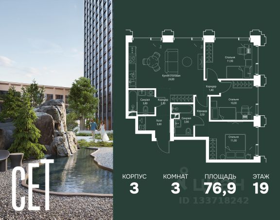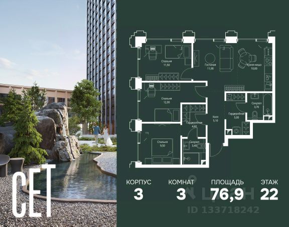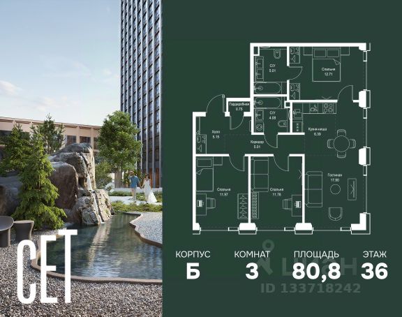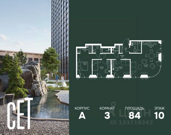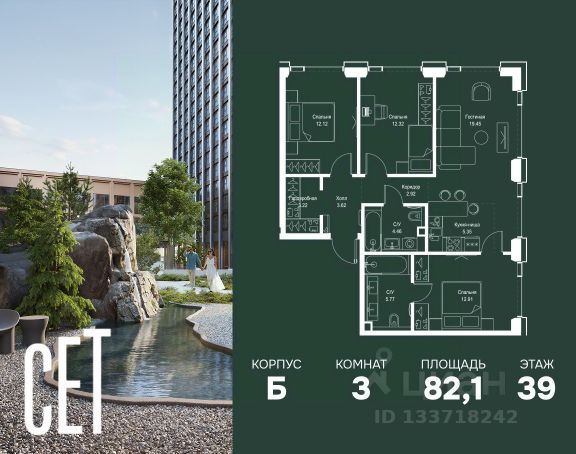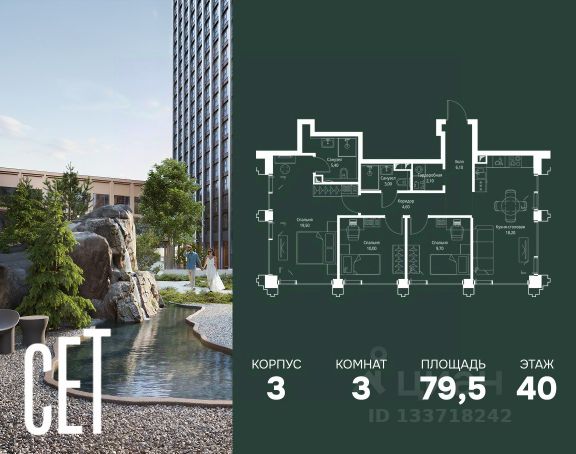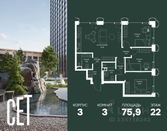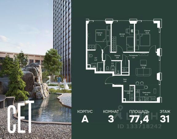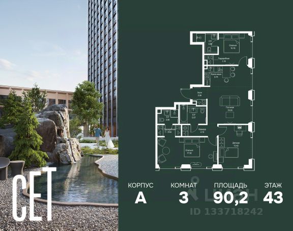 Прямая продажа от застройщика. В ЖК Сет продается 3-комнатная квартира площадью 75.18 м², расположенная в корпусе А, на 28 этаже 52 этажного дома. Сет имеет стратегически выгодное расположение в ЗАО, в районе с большой историей и блестящим будущим: между природной зоной долины реки Сетунь и Кутузовским проспектом. В рамках возведения первой очереди предусмотрено три корпуса высотой 18, 45 и 59 этажей. На верхних этажах спроектированы общедоступные смотровые площадки с панорамным обзором на центр столицы. Преимущества проекта: • Функциональные планировочные решения • Контроль проникновения через входную дверь • Система управления освещением и температурой в квартире • Система защиты от протечек с функцией перекрытия воды • Вход в подъезд по биометрическим считывателям Face ID • Скоростные лифты • Двухуровневый подземный охраняемый паркинг на 495 машино-мест Застройка Сет включает в себя не только жилые корпуса, но и инфраструктурные объекты. Все необходимое для повседневного комфорта будет расположено в шаговой доступности: • Фитнес-Клуб с бассейном • Ведущая городская школа, детский сад и школа искусств • Центр культуры и досуга • Медицинский центр • Кафе и рестораны Расположение комплекса: Пешком: • Метро "Давыдково" - 17 минут • Парк "Долина реки Сетунь" - 3 минуты • Открытие новых станций метро в шаговой доступности в будущем Инфраструктура: Разнообразить свой день резиденты Веер смогут также проводя больше времени на свежем воздухе. Двор разделен на 4 зоны разных эмоций и действий, которые пересечены и соединены веерными прогулочными маршрутами: • Спортивная площадка устроена в глубине ""Кленовой рощи"" • В ""Чайном домике"" будет создан навес с утеплением для отдыха в любую погоду • Площадки для детей воплотятся в ""Волшебный лес"" с цветами, зеркалами и световым дизайном • ""Центральная площадь"" устроена у водного оазиса живописного пруда. На машине: • "Москва-Сити" - 15 минут • Садовое кольцо - 20 минут • ТЦ "Океания" - 8 минут • ТЦ "Времена года" - 13 минут • Сколково - 12 минут • Гребной канал - 17 минут Компания MR предлагает своим клиентам специальные условия приобретения квартир в рамках программ ипотечного кредитования от банков-партнеров.