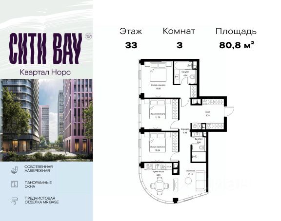 Прямая продажа от застройщика. Продаётся 3-комнатная квартира общей площадью 90.50 м² без отделки в ЖК Сити Бэй, квартале Пасифик, на 12-м этаже 59 этажного дома. Концепция жилого комплекса Сити Бэй - настоящий город в городе с отлично развитой инфраструктурой и собственной благоустроенной набережной. На территории жилого комплекса расположено пять кварталов - Атлантик, Пасифик, Индиан, Норс, Клиф. Жилой квартал Сити Бэй отличается оригинальной концепцией и выделяется среди других проектов такими характеристиками как: - Архитектура, - Виды из окон, - Природное окружение, вызывая гордость у жителей и восхищение у прохожих. Вся жизнь района Покровское-Стрешнево строится вокруг водных объектов: - Пойма реки Сходни с уникальной экосистемой, - Речка Химка и Химкинское водохранилище, - Москва-река, - Канал имени Москвы. Кругом вода, и местные с удовольствием этим пользуются. А сразу за рекой - центр водного спорта в Строгино с вейк-парком и яхт-Клубами. Помимо воды, здесь очень много зелени: - Рядом Сходненский ковш памятник природы, естественный амфитеатр глубиной 40 метров; - Парк при усадьбе Братцево с фруктовым садом; - Дубовая роща "Маяк", - Алешкинский лес; - Лесопарк Покровское-Стрешнево с пляжами и бобрами. Главные транспортные артерии района: - Волоколамское шоссе, - Таганско-Краснопресненская линия метро и МЦД-2. Всего за 20 минут можно добраться до центра на машине или метро, а МЦД связывает ЖК Сити Бэй с северными, восточными и юго-восточными районами. Компания MR предлагает своим клиентам специальные условия приобретения квартир в рамках программ ипотечного кредитования от банков-партнеров. 3-комнатная квартира от застройщика на шоссе Волоколамское в Москве.