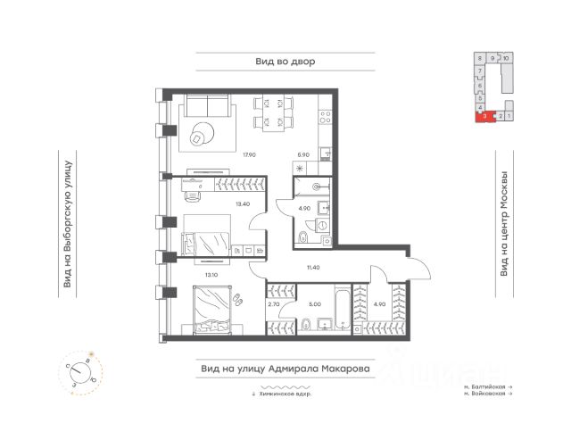 Цена указана с учётом скидки при 100%-й оплате, несубсидированной ипотеке, рассрочке (кроме программы "Рассрочка 0%"). Продается 3-комнатная квартира площадью 93.70 кв. м без отделки. Квартира находится на 16 этаже 20-этажного корпуса 3, в новом жилом комплексе бизнес-класса Левел Войковская, расположенном рядом с живописным заповедником "Покровское-Стрешнево" (застройщик - компания Level Group/Левел групп). Прекрасная транспортная доступность - 7 мин. пешком до станции МЦК "Балтийская"; - 15 мин. пешком до станции метро "Войковская"; - 8 мин. на машине до ТТК; - 15 мин. на машине до центра Москвы; - 20 мин. на машине до Москва-Сити. Продуманный архитектурный проект - стильная архитектура от мастерской Фефелова В. В.; - панорамные виды на парки, Химкинское водохранилище и Останкинскую башню; - лобби с высотой потолков до 6,45 метров; - более 20 видов планировок, включая редкие форматы квартир с террасой и увеличенной высотой потолков до 5,42 метров; - 2 варианта дизайнерской отделки в корпусе 4 как дополнительная опция к предчистовой отделке: стиль Модерн в светлых холодных тонах и стиль Классик в нейтральной бежевой гамме. Квартиры в корпусах 3 и 5 сдаются без отделки. Расположение Жилой комплекс Левел Войковская строится в престижном Северном округе Москвы, где развитая инфраструктура и живописная природа переплетаются в единый ансамбль. Войковский район окружают парки и набережные. В шаговой доступности - парк "Покровское-Стрешнево", не более 15-ти минут на велосипеде занимает путь до Тимирязевского парка и 9-ти минут до парка усадьбы Михалково. Рядом более 60 школ, 75 дошкольных учреждений, 17 государственных и 6 частных вузов, 25 супермаркетов, 4 торговых центра, среди которых ТЦ "Метрополис" и ТЦ "Авиапарк". Внутренняя инфраструктура На территории жилого комплекса предусмотрены коммерческие помещения: кафе, ресторан, пекарня и другие сервисы на первых этажах корпусов. Для жителей будет доступен отапливаемый подземный паркинг на 244 машино-места с доступом с любого этажа на лифте. На территории паркинга будет расположено 125 кладовых помещений для хранения сезонного инвентаря. Лобби и благоустройство Дизайн лобби жилого комплекса Левел Войковская создан совместно с бюро "Бланк Архитектс" (Blank Architects). Теплая цветовая гамма, ресепшен, зоны ожидания, лапомойки и гостевые санузлы - каждая деталь превращает лобби в комфортное продолжение вашего дома. 1,15 га площади в первых двух этапах строительства отведено под приватный внутренний двор, который спроектирован совместно с бюро "Правда". Детские площадки для всех возрастов, спортивные пространства для йоги, уличных тренировок и петанка, уютные зоны для тихого отдыха или работы. Здесь утро начинается с вдохновения, а вечер наполнен приятными моментами. Лифты Комфортное перемещение внутри жилого комплекса обеспечат надёжные лифты с доступом в паркинг с жилых этажей. В каждом корпусе предусмотрено по 3 грузопассажирских лифта. Купить 3-комнатную квартиру от застройщика в районе Войковский в Москве.