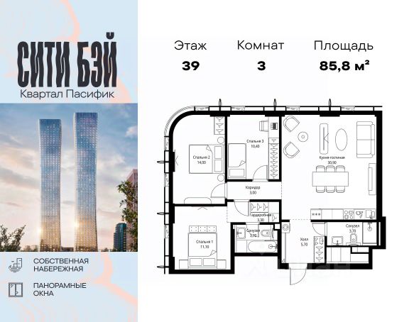 Новогодний марафон скидок! Выгода до 20% в декабре. ЮТУ-камерные небоскребы бизнес-класса с исключительной архитектурой, видовыми квартирами и подходом к большой воде-благоустроенной набережной канала имени Москвы. Проект ЮТУ создает идеальный баланс жизни в городе. Это приватный оазис, где в любой момент можно сменить контекст и выбрать любой из тысячи маршрутов к активному отдыху и ярким впечатлениям. Локация премиум-класса • Первая линии в прибрежной части Химкинского водохранилища • Исключительно тихий и зелёный район Южное Тушино • За 2 минуты можно спуститься к воде, за 10 минут найти зеленые парки и готовую инфраструктуру, за 30 минут доехать до Кремля Концепция проекта • Две футуристичные башни, соединенные торговой галереей от бюро ATRIUM • 60 неповторяющихся планировок: квартиры с угловым "плавным" панорамным остеклением, мастер-спальнями и гостиными до 39м² и просто очень большие квартиры площадью до 128,6 м² • Беспрецедентная коллекция видов-в проекте 80 % видовых квартир Чувство эксклюзивности • Своя приватная жилая экосистема -только для резидентов домов • Лаунж-терраса на крыше • Пространство скрыто от посторонних глаз-с трех сторон его окружают строения проекта Прогрессивные технологии • 3-уровневая система безопасности (Face ID, BLE-метки, видеонаблюдение) • Умный паркинг с распознаванием номеров Проект федерального девелопера ТОЧНО-из ТОП-3 застройщиков России. Компания в проекте реализует ответственный подход к развитию пространств для благополучной жизни человека. И что в ЮТУ особенное воплощение приобретает концепция человекоцентричности, как заметная грань девелопмента ТОЧНО. Продается 3-комнатная квартира от застройщика в районе Южное Тушино в Москве.