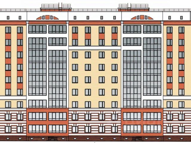 Пятнадцатиэтажный кирпичный дом выполнен в традиционном архитектурном стиле с благоустроенной территорией (детская площадка, парковка, подъездные пути, зеленые насаждения).