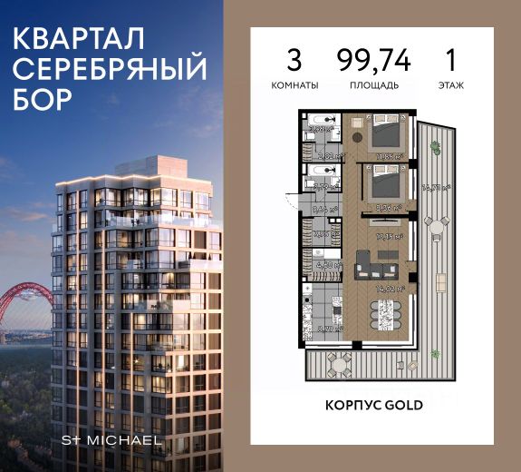 Клубный "Квартал Серебряный Бор". Премиум-класс. Коллекция статусных домов в окружении заповедного парка 340 га и набережной. Расположение: Жилой комплекс возводится в престижном районе Хорошёво-Мневники. Главное преимущество — близость к природному заповеднику "Серебряный Бор". Всего в 10 минутах от квартала Вас ждут 340 гектаров реликтового соснового леса, чистые пляжи с белым песком и набережная Москвы-реки. Инфраструктура парка включает знаменитый ресторан "Поместье" с бассейном и лаунж-зоной, а также современный яхт-порт, предлагающий аренду яхт, катеров, хаус-ботов и места для частных судов длиной до 15 метров. 10 минут на авто до Москва-Сити. В 5 минутах от квартала располагается проспект Маршала Жукова. Благодаря его многоуровневой развязке и движению в каждом направлении по пяти полосам жители смогут за короткое время доехать как до центра города так и до Новой Риги и Рублевского шоссе. 30 минут до Шереметьево 4 станции метро рядом: Серебряный бор Бульвар Генерала Карбышева Октябрьское поле Народное ополчение Инфраструктура: Панорамный бассейн-инфинити и джакузи под открытым небом. Сервис уровня 5 звезд. Персональные официанты из ресторана комплекса обеспечат подачу блюд и напитков прямо к вашему шезлонгу или в лаунж-зону. Двухуровневый ресторан с выходом к бассейну. 4 кафе с различными кухнями мира. Студия йоги, студия пилатеса, коворкинг, гастрономическая лавка, винотека, бутик-кондитерская, барбершоп, салон красоты, аптека, студия груминга, химчистка, цветочный бутик. Фитнес-студия для персональных тренировок с массажем и СПА. Благоустройство: Проект благоустройства создали специалисты международного архитектурного бюро "Гафа". Территория двора закрытая, предусмотрено ограждение внутренней территории высотой 3 метра. Со стороны ул. Берзарина двор закрыт стилобатом. На территории предусмотрены: Дроп-офф зона с фонтанами Променад с фонтанами и всесезонным озеленением Терраса для йоги и медитаций Воркаут-зоны, площадки с теннисным столом и зонами кроссфита Плейхаб для детей разных возрастов Летний кинотеатр Гранд-лобби Просторное гранд-лобби с высотой потолка 7м. Дизайн Гранд Лобби выполнен в стиле классических люксовых отелей с использованием премиальных материалов. Пол и стены: итальянский крупноформатный керамогранит под мрамор. Эксклюзивные люстры ручной работы. Дизайнерская итальянская мебель, античные скульптуры и предметы искусства. Каминная зона и лаундж для неформальных встреч. Высокоскоростные лифты КОЙО (скорость 2,5 м/с) Купить 3-комнатную квартиру от застройщика St Michael в Москве.