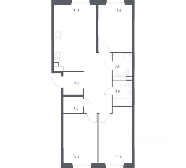 Изолированные 3 комнаты: 12 кв.м., 13 кв. м. и кухня-гостиная 20 кв.м. (кухонная зона отделана красивой плиткой Скандинавское утро) идеальное решение для всей семьи! Комнаты родителей и детей на противоположных сторонах дома никто не будет никому мешать.