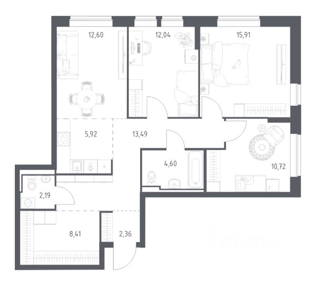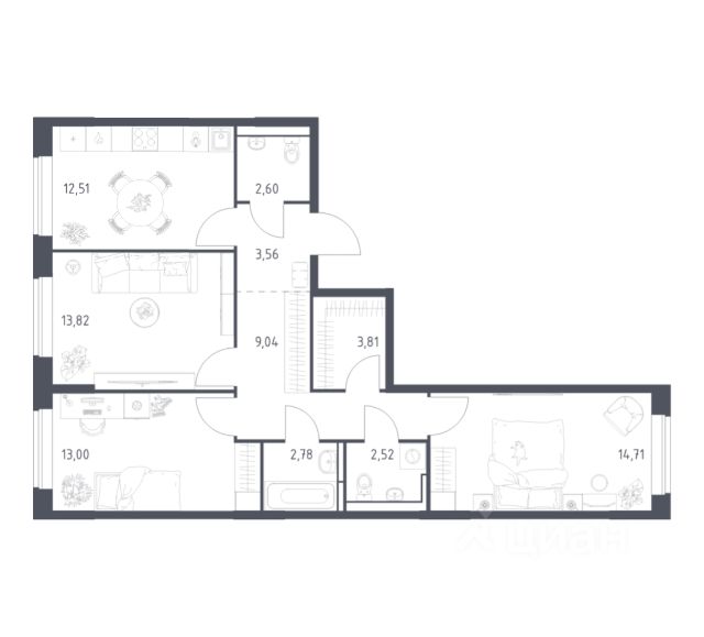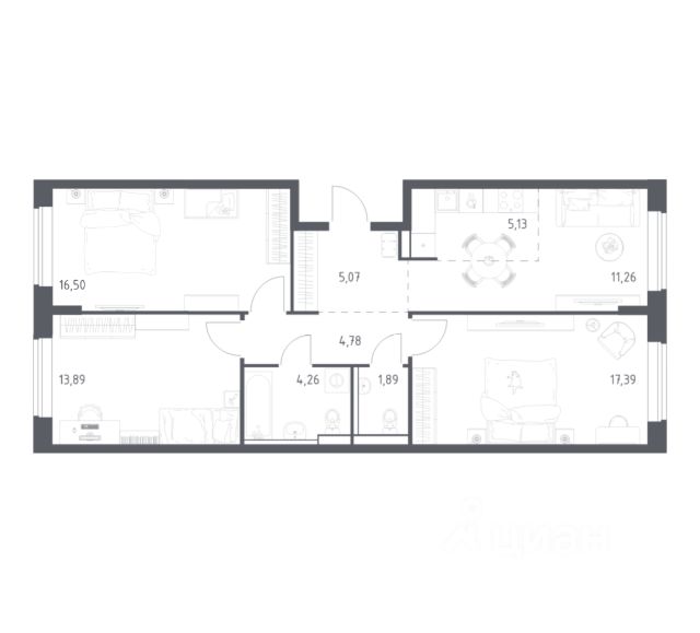 Квартира с кухней-гостиной и тремя спальнями в Квартале Герцена. Особенности планировки: балкон, второй санузел, гардеробная, окна на две стороны, постирочная, предчистовая отделка, французский балкон. Квартиру можно купить онлайн. В квартире выполнена отделка "под чистовую". Установлены окна с двойным стеклопакетом, радиаторы с терморегуляторами. На полу цементно-песчаная стяжка. В квартиры заведены кабели для интернета и ТВ. Входная сейф-дверь не требует замены. Организован поквартирный учёт энергоресурсов (водоснабжение, отопление, электричество). Квартал "Герцена" расположен в Бирюлёве Восточном — районе на юге Москвы. Дорога до ТТК займет всего полчаса на автомобиле, до станции метро и ж/д станции "Царицыно" — 13 минут, а до автовокзала "Южные ворота" — 20 минут. До автобусных остановок можно дойти пешком. В 2027-2028 году откроется новая станция метро "Лебедянская", дорога до неё займет всего 18 минут. Общая площадь "Квартала Герцена" составляет 27,3 га. Дома состоят из разноуровневых секций высотой от 6 до 55 этажей с видовыми террасами и балконами. На территории квартала будет построена поликлиника, детский сад на 350 мест и воспитательно-образовательный комплекс на 1075 мест, а также рестораны, клиники, магазины и салоны красоты. Объявление от застройщика. Ипотека, материнский капитал. Обмен — один из способов покупки. Обмен подойдёт, если вы хотите быстро поменять старую квартиру на новую. Получить ипотеку или рассрочку, а также обменять квартиру можно онлайн. Запишитесь на онлайн-презентацию по телефону или на сайте. квартиры в нашей базе: ГРЦ01.2-Ж4.14.1.
