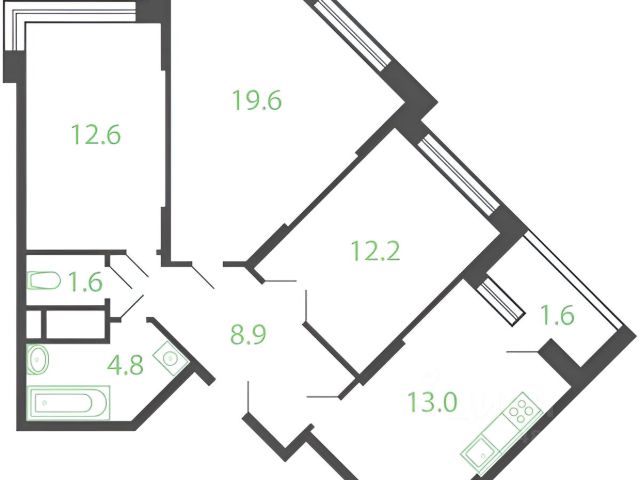 Кухня, гостиная, 3 спальни, 3 с/у