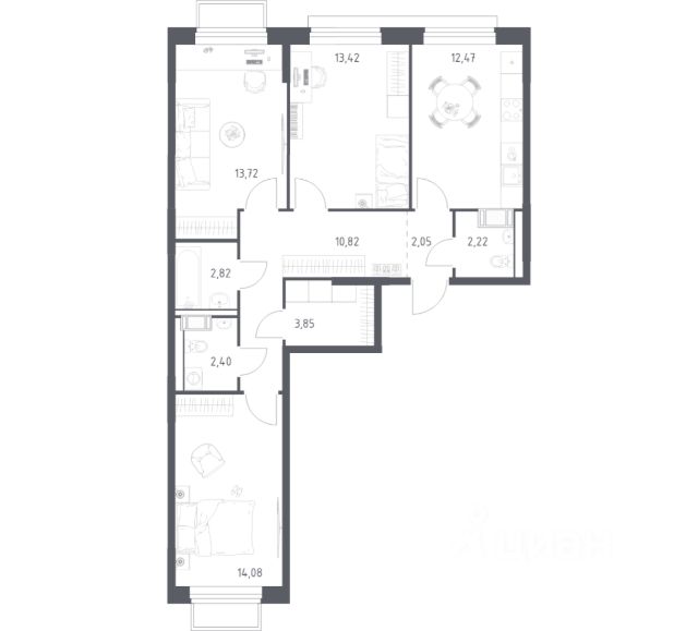 В продаже 3-комнатная квартира в корпусе 6.4 ЖК 'Томилино Парк'. Квартира располагается на 12 этаже, общая площадь 81.39 м2.