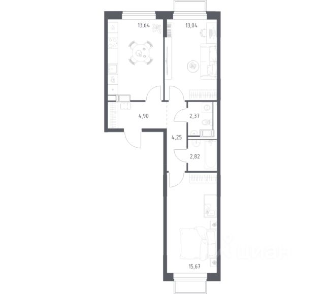 В продаже 2-комнатная квартира в корпусе 6.2 ЖК 'Томилино Парк'. Квартира располагается на 15 этаже, общая площадь 56.0 м2.