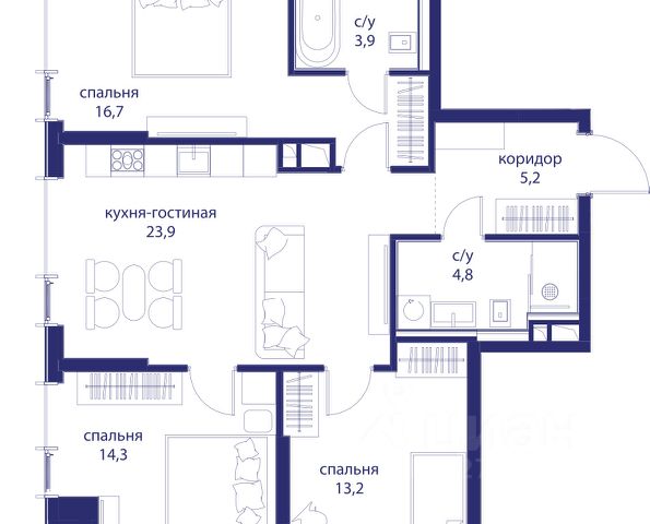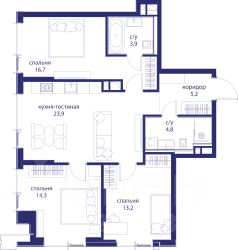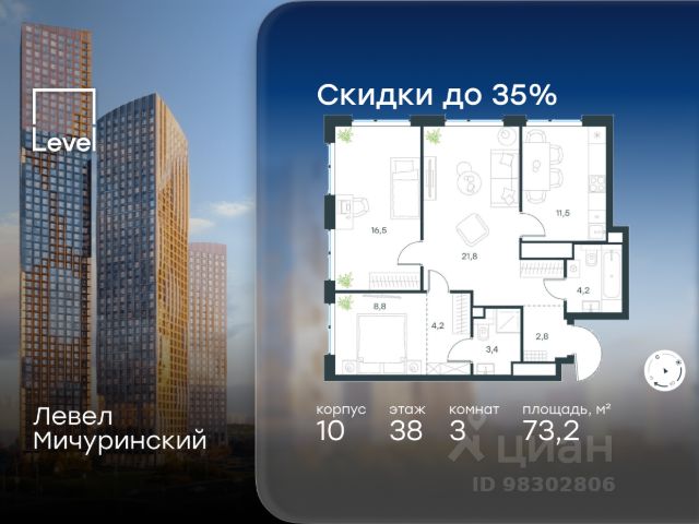 Весь март - скидка до 8% действует до 31.03.2026 г. при 100% оплате и не субсидированной ипотеке! В продаже 3-к квартира от застройщика. Общая площадь 83.7, жилая 63.2, кухня 20.5. Квартира расположена на 9 этаже жилого квартала "Событие-6", корпус 1, Секция 3. Квартира с чистовой отделкой. Срок сдачи: 4 кв. 2029 года. СОБЫТИЕ.6 — финальный дом парк-квартала СОБЫТИЕ на Мосфильмовской. Переезжайте в уже сформированный квартал с готовой инфраструктурой и парком! Премиальный жилой комплекс в престижном районе Москвы предлагает стильную архитектуру, продуманное благоустройство и великолепно разнообразие общественных пространств. Свой парк прямо возле дома! Архитектура Архитектура СОБЫТИЯ.6 выполнена в ультрасовременном стиле московским бюро Atrium на основе дизайн-кода британских архитекторов LDA Design и UHA London. Дом отличает оригинальная геометрия фасадов, большое остекление и высокие лобби (до 6,2 м) с авторской мебелью и светильниками. Расположение Мосфильмовская улица (Раменки) — один из престижных районов Москвы. Близость к историческому и деловому центру, природным зонам Запада столицы. Транспортная доступность: • 10 мин до Москва-Сити и ТТК; • 15 мин до Садового кольца; • 25 мин до аэропорта Внуково; • 7-10 мин до станций метро "Аминьевская" и "Мичуринский проспект". Инфраструктура: • парк "Событие" (12 га, финалист конкурса Правительства Москвы) с беговыми (1,5 км) и велодорожками (2,7 км), экотропой (1,6 км), площадками, лекторием; • школа, детский сад, магазины, салоны красоты, рестораны (к моменту заселения); • мультидвор с игровыми и спортивными площадками, мини-бульваром; • общественная терраса на 10-м этаже (коворкинг, лаунж); • Закрытые общественные пространства: детская комната, спортивный зал, коворкинг, лаунж-зоны. Паркинг 256 мест для жителей (48 — для электромобилей), 24 гостевых (5 — для электромобилей), мойки колес, кладовые, зоны для велосипедов. Окружение Парки и заповедники (Воробьёвы горы, Матвеевский лес и др.), МГУ, театр им. Н. И. Сац, стадион "Лужники". Безопасность Видеонаблюдение, контроль доступа, видеодомофоны, консьерж-сервис 24/7, системы пожарной безопасности и мультисервисная оптическая сеть.