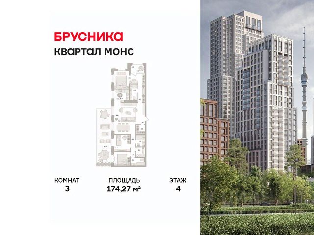 Продаётся 3-комнатная квартира площадью 85.7 кв.м на 20 этаже 55 этажного корпуса Эльбрус в квартале небоскребов "Апсайд Тауэрс". В квартире предчистовая отделка, с видом на детский сад, БЦ Останкино. Номер квартиры А2004. "Апсайд Тауэрс" - технологичный квартал строится в динамично развивающемся Бутырском районе, в 3 мин. от метро, в 5 мин. от ТТК. На территории 7 га возводится 5 высотных башен от 19 до 58 этажей, названных в честь главных вершин земли. Квартиры с панорамными окнами в пол, высокими потолками и современными инженерными решениями. В проекте: - приточновытяжная вентиляция (воздух по качеству не уступает горному); - пятиступенчатая очистка воды с сохранением полезных минералов; - центральное кондиционирование; - внутрипольные конвекторы; - системы безопасности и мониторинга микроклимата; - высокоскоростной интернет на всей территории; - подземный паркинг с зарядками для электрокаров. Социальная инфраструктура: - Upside Клуб (более 2 000 м²) — спацентр на 47м этаже башни "Атлас" (джакузи, сауна, залы для релаксации и йоги), барбекюпатио, гостиная с камином и роялем, коворкинг, переговорные, домашний кинотеатр и др.; - смотровые террасы с видами на город, парки, Останкинскую башню, ВДНХ, Ботанический сад и МосквуСити; - ландшафтный парк 2,5 га с сенсорным садом, игровыми и спортивными площадками; - государственная школа и детский сад; - более 15 000 м² коммерческой инфраструктуры. Бутырский район развивается и станет новым деловым районом Москвы. По программе "Индустриальные кварталы" на территории Огородного проезда построят образовательные и спортивные учреждения, торговые центры, кафе, банки и общественноделовые здания. Рядом — Парк Останкино, ВДНХ, Сокольники, Гончаровский парк, дизайнзавод Flacon и "Хлебозавод". До центра Москвы на авто — 15 мин. Застройщик: ООО "СЗ "КДевелопмент" (Upside Девелопмент).