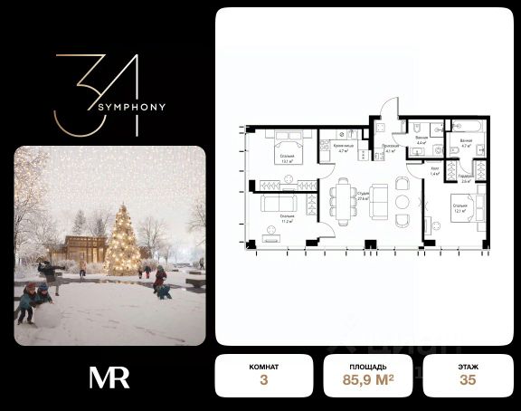 Дом сдан. Ключи в день покупки! В продаже 3-комнатная квартира площадью 85.60 м² с предчистовой отделкой на 10 этаже 43 этажного дома в корпусе Сильвер. ЖК Симфония 34 - концептуально новый жилой комплекс премиум-класса с подземной парковкой, состоит из четырех башен высотой 36 - 54 этажа. Квартиры сдаются с базовой (предчистовой) отделкой MR BASE или дизайнерской чистовой отделкой MR READY. Высота потолков 3 - 6 метров, окна высотой до 2,6 м. Более 100 кладовых в подземной части ЖК и более 500 на этажах. Безопасность - Система контроля входа на территорию комплекса, биометрия - Система автоматического водяного пожаротушения и противопожарного водопровода, система пожарной вентиляции - Доступ на парковку при помощи системы распознавания автомобильных номеров, карточка для контроля доступа резидентов - Система видеонаблюдения - Круглосуточная связь через приложение, телефон, голосовые сообщения с охраной, консьержем, call-центр. Расположение Пешком - 6 минут до метро "Дмитровская" - 15 минут до Тимирязевского парка На машине - 5 минут до Савеловского вокзала и Аэроэкспресса в Шереметьево - 10 минут до Москва-Сити и Садового кольца Благоустройство - 70% территории отведены под зеленые насаждения и ландшафтный дизайн - Приватный Японский сад - Детские площадки с зонированием по возрасту - Clubhouse для резидентов - Wellness & SPA - Зона для пикника, зона с гамаками - Центральное лобби, ресторан, коммерческие помещения - Дополнительный вход/выход на территорию комплекса Окружение - В 10 минутах от Symphony 34 находится дизайн-завод Flacon, где регулярно проходят культурно-образовательные и развлекательные мероприятия - Тимирязевский парк расположен в 850 м. Площадь парка 232 га - Рядом расположен парк "Дубки", площадью 16,5 га. - В 15 минутах расположен Хлебозавод 9. Здесь находятся шоурумы брендов, кафе разных кухонь мира, образовательные проекты и площадки для мероприятиКомпания MR предлагает своим клиентам специальные условия приобретения квартир в рамках программ ипотечного кредитования от банков-партнеров. 3-комнатная квартира с отделкой рядом с метро Тимирязевская.