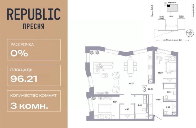 Новая квартира в ЖК "Republic" напрямую от федерального застройщика "Страна Девелопмент". Продается 3комнатная квартира на 8 этаже от застройщика Страна Девелопмент. Площадь квартиры 74,74 кв. м. Дизайн-квартал "Republic" — новый проект премиум-класса в Москве. 10 жилых башен и 4 восстановленных здания локомотивного депо образуют уникальное пространство. "Republic" — место, где вы ощутите гармонию истории и современности. Детский сад, SPA-комплекс с бассейном, гастрономический и шопинг-центры, собственный бульвар и яркие арт-пространства — для жителей предусмотрены все элементы премиального комфорта. Преимущества Уникальная жизненная среда, где инфраструктура включает гастрономию, SPA-комплекс с термами, образовательные и развлекательные заведения, арт-пространство и шопинг-аллеи. Двор от британского бюро "Gillespies": на 4 гектарах закрытого двора расположится 7 игровых зон для разных возрастов с ручьем и сухим фонтаном, арт-галерея под открытым небом и большой прогулочный бульвар. Лобби с террасой в башнях "Reds" — лаконичное пространство галереи-лобби, где можно проводить деловые и дружеские встречи, не нарушая приватности квартиры. В тёплое время года не остаётся пустующей терраса на крыше, которая привлекает непринуждённой атмосферой и прохладительными напитками в баре. Клубная гостиная — стильное пространство оборудовано кухней и залом для торжеств на 40 человек, а для того, чтобы побыть наедине с собой, почитать книгу или провести онлайн-встречу в гостиной оборудована мастерская с библиотекой. Уникальные форматы квартир, где можно реализовать любой жизненный сценарий: от стильного офиса в двухэтажной квартире до угловых лотов с просторными гостиными. А эксклюзивные пентхаусы с высокими потолками и панорамными окнами дарят захватывающие виды на Москву.. Отделка Квартиры сдаются без отделки или в формате White box. При отделке White box уже были выполнены все шумные и грязные работы руками наших специалистов: произведена разводка электричества с установкой подрозетников, установлены откосы из гипсокартона, устроена стяжка пола с шумоизоляцией. Способы покупки Сотрудники "Страна Девелопмент" будут сопровождать вас на каждом этапе сделки, помогут получить одобрение по ипотеке или снизить ежемесячный платеж. - ипотека - рассрочка - с использованием материнского капитала - 100% оплата наличными 3-комнатная квартира с отделкой рядом с метро Улица 1905 года.