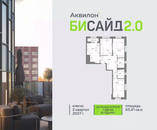 Продажа от застройщика. Продается просторная 3-комнатная квартира на 22 этаже современного жилого комплекса Бисайд 2.0. Вид из окон: на улицу. Срок сдачи: 2 кв. 2027 г. Квартира с лоджией. Отделка WhiteBox: - Вам не придется заниматься черновыми работами. - Возможность реализовать любой дизайн-проект. Расположение: В Бисайд 2.0 все необходимое - в шаговой доступности, не нужно тратить много времени на дорогу до работы, школы и поликлиники, походы в магазины и кинотеатры. Квартал расположен на пересечении ключевых транспортных магистралей Москвы, что позволяет быстро и легко добраться до любой нужной локации. Выбирайте наиболее подходящее занятие или попробуйте все! - Спортивные центры - Ретейл на первых этажах - Событийная площадь с амфитеатром - Дворовые площадки для активностей Транспортная доступность: - 5 минут на машине до ТТК - 7 минут на машине до Садового кольца - 7 минут пешком до станции "Нижегородская Внутренняя инфраструктура Бисайд 2.0: - Своя школа на 825 учеников - Просторное и светлое гранд-лобби - Коворкинг на открытом воздухе - Детский клуб Akvilon Kids - Подземный паркинг - Колясочные и велосипедные - Сити-боксы для хранения - Профессиональная управляющая компания Преимущества: - Технология энергоэффективности Termo-S, снижающая теплопотерю домов и позволяющую экономить на электроснабжении - Soundstop - технология дополнительной шумоизоляции на 39 дБ в квартирах с WhiteBox и чистовой отделкой - Система умного дома inHome 3.0 позволит контролировать коммунальные расходы, оплачивать счета и пользоваться услугами, не выходя из умного дома - Vent-In - система циркуляции воздуха в каждой комнате