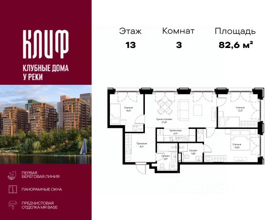Новогодний марафон скидок! Выгода до 20% в декабре. ЮТУ-камерные небоскребы бизнес-класса с исключительной архитектурой, видовыми квартирами и подходом к большой воде-благоустроенной набережной канала имени Москвы. Проект ЮТУ создает идеальный баланс жизни в городе. Это приватный оазис, где в любой момент можно сменить контекст и выбрать любой из тысячи маршрутов к активному отдыху и ярким впечатлениям. Локация премиум-класса • Первая линии в прибрежной части Химкинского водохранилища • Исключительно тихий и зелёный район Южное Тушино • За 2 минуты можно спуститься к воде, за 10 минут найти зеленые парки и готовую инфраструктуру, за 30 минут доехать до Кремля Концепция проекта • Две футуристичные башни, соединенные торговой галереей от бюро ATRIUM • 60 неповторяющихся планировок: квартиры с угловым "плавным" панорамным остеклением, мастер-спальнями и гостиными до 39м² и просто очень большие квартиры площадью до 128,6 м² • Беспрецедентная коллекция видов-в проекте 80 % видовых квартир Чувство эксклюзивности • Своя приватная жилая экосистема -только для резидентов домов • Лаунж-терраса на крыше • Пространство скрыто от посторонних глаз-с трех сторон его окружают строения проекта Прогрессивные технологии • 3-уровневая система безопасности (Face ID, BLE-метки, видеонаблюдение) • Умный паркинг с распознаванием номеров Проект федерального девелопера ТОЧНО-из ТОП-3 застройщиков России. Компания в проекте реализует ответственный подход к развитию пространств для благополучной жизни человека. И что в ЮТУ особенное воплощение приобретает концепция человекоцентричности, как заметная грань девелопмента ТОЧНО. Продам 3-комнатную квартиру с отделкой в округе СЗАО в Москве.