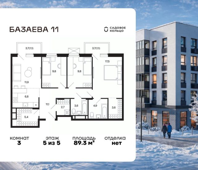 Продается квартира в ЖК "Базаева, 11" с 3 спальнями на 3 этаже 5 этажного дома. Общая площадь: 80 кв.м. Высота потолков 2.72 м. Срок сдачи 2 квартал 2027 г. Эскроу-счет. Застройщик ГК "Садовое кольцо". -Расположение Жилой комплекс в экологически чистом районе Московской области городском округе Шаховская. Камерное пятиэтажное здание находится в пешей доступности от всей необходимой инфраструктуры. Автостанция Шаховская расположена в 10 минутах от дома. Всего в 11 минутах ходьбы находится ж/д станция Шаховская, откуда удобно добраться электричкой до Рижского вокзала. Дорога до МКАД займет 1,5 часа на автомобиле. -Инфраструктура Проект расположен рядом с современным теннисным центром и Дворцом торжеств. В шаговой доступности — детская школа искусств, Шаховская гимназия, школа 1 и три детских сада. Всего за 3 минуты от дома можно дойти до Городского парка — здесь вас ждут аттракционы, верёвочный городок, тюбинговая горка и ресторан. Парк соседствует с живописным сквером у реки, украшенным подвесными мостами, ротондой и фонтанами. -Внутренний двор На территории проекта появится огороженная детская площадка, рассчитанная на детей всех возрастов, — с песочницей, канатным комплексом и зоной для игр. Для любителей активного образа жизни будет обустроена спортивная площадка с теннисным столом, турниками, тренажёрами и гимнастическими брусьями. Для автовладельцев на территории проекта предусмотрена удобная плоскостная парковка на 81 машино-место. -Архитектура Монохромное здание оформлено декоративным кирпичом и штукатуркой в тёплых светло-серых и насыщенных серых тонах. Эстетику фасада подчёркивают террасные ограждения и корзины для кондиционеров, выдержанные в единой цветовой гамме. -Входная группа Входные группы спроектированы на уровне земли — без ступеней и перепадов. Такой подход обеспечивает комфортный доступ в подъезд с коляской, чемоданом или велосипедом и подчеркивает продуманную архитектуру дома.