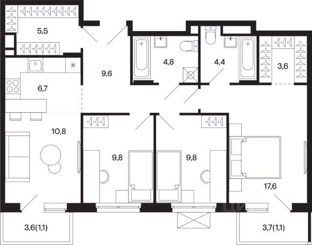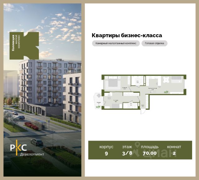 Продается 1-комн. квартира площадью 32 кв.м на 10 этаже 19 этажного дома в ЖК "Союзный" от федерального девелопера ГК "Вектор".