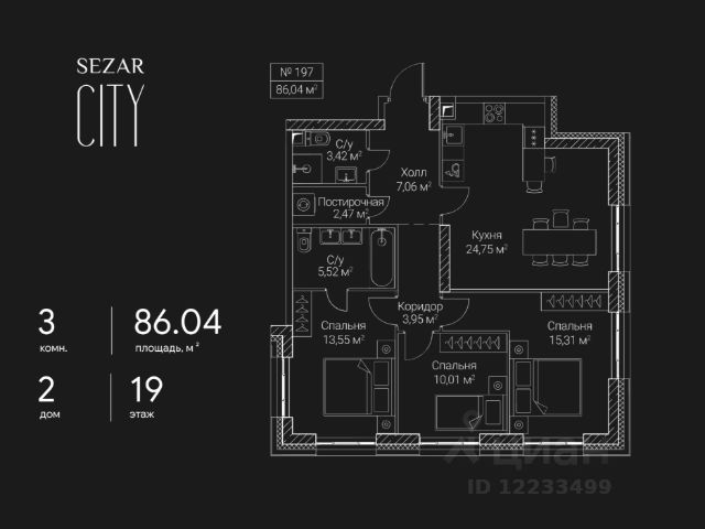 Продается 3-комнатная квартира в ЖК СЕЗАР СИТИ на 5 этаже. Общая площадь квартиры составляет 72,15 кв.м. Квартира без отделки. Срок сдачи - 2027 год. Архитектурный облик СЕЗАР СИТИ в полной мере выражает глубокую философию ар-деко, в основе которой - красота, удовольствие и комфорт. Облик каждого дома деликатно продолжает традиции величественной архитектуры зданий на престижных магистралях Москвы. В рельефной пластике экстерьеров корпусов особенно эффектно выделяется арочный стиль. Комбинации материалов и форм, обилие элементов декора придают фасадам зданий собственный неповторимый облик и изысканно дополняют их грацию. Планировки всех квартир спроектированы по стандартам премиум-класса, когда функциональность помещений дополняет высокий комфорт проживания. Элементы лобби тщательно продуманы, чтобы впечатлять и вдохновлять. Пространство каждого лобби оформлено дорогими материалами и мебелью. В большинстве квартир предусмотрены эркеры и просторные лоджии. Для комфорта жителей предусмотрен подземный паркинг с кладовыми помещениями и автомойкой. В каждом лобби расположена стойка консьержа. В концепции приватных дворов лежат узнаваемые элементы и формы классических парковых пространств, в т. ч. амфитеатры, аркады и галереи. СЕЗАР СИТИ - новый проект компании, в полной мере сочетающий в себе все качества недвижимости особой ценности. Преимущества локации: - Хорошевский район - это престижный и динамично развивающийся район Москвы с богатой историей. Здесь открываются транспортно-пересадочные узлы, строятся деловые кластеры, создаются новые общественные пространства и парки. - СЕЗАР СИТИ находится в самом центре Большого Сити. Концепция развития этой территории предусматривает формирование принципиально нового городского центра с современной общественно-жилой застройкой. Позвоните сегодня в офис продаж, и мы с удовольствием пригласим вас в гости. Менеджер подробно расскажет о преимуществах жилого комплекса за чашкой ароматного кофе. Продается 3-комнатная квартира первичка на проезде 2-й Хорошевский в Москве.