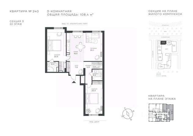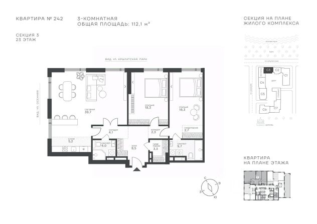 Успейте стать частью уникального проекта премиум-класса на западе Москвы! В продаже квартиры: 1-комнатные от 28,1 м²; 2-комнатные от 61,2 м²; 3-комнатные от 86,6 м²; 4-комнатные от 110,7 м². Первый взнос от 30%! Рассрочка на 2 года без переплат! Крылатское 33 это премиальный жилой комплекс от специализированного застройщика ООО "Сияние". Самый высокий небоскрёб в районе, достигающий отметки в 150 метров и малоэтажный клубный формат высотой от 42 метров на приватной территории площадью 1,4 га. Великолепные виды на излучину Москва-реки, Живописный мост и урбанистический облик города. Эксклюзивные форматы квартир с панорамным остеклением и патио-террасами. Двухуровневый паркинг на 271м/м, премиальные входные группы, ресторан высокой кухни, детский сад и эко-маркет на территории комплекса. Эксклюзивные преимущества: доступ к wellness-центру, коворкингу и клубной гостиной только для резидентов. Над проектом работали именитые российские архитектурные бюро: архитектор проекта бюро "Остоженка", планировочные решения от бюро Александры Федоровой. Расположение Пешком: 5-7 минут - до парка Звезд, Крылатского парка и набережной Москвы-реки; 15 минут - до метро Крылатское Арбатско-Покровской линии; 15 минут - до пристани Крылатская. На автомобиле: 10 минут - до Третьего транспортного кольца; 15 минут - до Садового кольца и Москва- Сити; 20-30 минут - до Аэропорта Внуково; 30-40 минут - до Аэропорта Шереметьево. В 300 метрах от комплекса - удобная транспортная развязка с проспектом Маршала Жукова, обеспечивающая легкий доступ к ключевым магистралям. Благоустройство: Просторная общественная гостиная; Коворкинг с кофе-баром, комфортные переговорные зоны с быстрым wi-fi, зарядными устройствами и библиотекой; Пространство friends lab для организации клубных мероприятий; Wellness-центр с фитнес-залом и массажными кабинетами; Ресторан высокой кухни; Частный детский сад; Детское кафе; Современный детский playhub; Спортивные площадки; Гипоаллергенный сад, безопасные водные пространства, декоративные пруды и сухие фонтаны; Высокоскоростные бесшумные лифты; Разделение зон для резидентов квартала и сервисного обслуживания. Окружение: - парки: Крылатские холмы, природно-исторический парк Москворецкий, Серебряный Бор; - учебные заведения: 5 образовательных комплексов, в которые входят 15 детских садов и 12 школьных корпусов. В удобной транспортной доступности гимназия им. Е. М. Примакова и международный лицей The International School of Moscow; - уникальные спортивные сооружения: гребной канал "Крылатское", легендарный велотрек "Крылатское", "Лата Трэк" для горнолыжников и сноубордистов, ледовый дворец "Крылатское"; - единственный в Москве парк развлечений под открытым небом, включающий более 70 вариантов досуга для любого возраста и времени года. Срок сдачи проекта: 2 квартал 2027 года. Финансирование и эскроу-счет обеспечены банком МКБ. Продам 3-комнатную квартиру первичка в районе Крылатское в Москве.