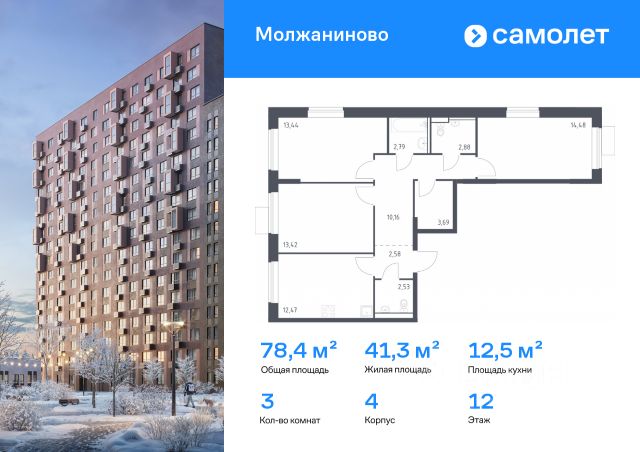 УСПЕЙ ПО СЕМЕЙНОЙ ИПОТЕКЕ БЕЗ НАЦЕНКИ! От 31 600 рублей в месяц! Прямая продажа от застройщика! Жилой Комплекс класса Комфорт Плюс. Продаётся 3-к квартира номер 400 общей площадью 84.4 кв.м. на 12-м этаже 14 этажного здания. Отделка Whitebox. Цена с учётом скидки. Особенности квартиры: - Просторная спальня, в которой можно разместить большую кровать. - Распашная планировка - отличное сочетание удобства и свободы. - Гостевой санузел - комфорт и удобство для ваших гостей. - Просторная кухня - место для семейных ужинов и кулинарных экспериментов. - Просторная мягкая зона - комфорт и уют для отдыха всей семьи. - Лоджия - уютное место для отдыха и тишины. - Панорамное остекление лоджии - открывает вид на окружающий мир. Квартира с предчистовой отделкой (White box). Вам не придется заниматься черновыми и трудоёмкими работы, а чистовую отделку и дизайн - сделайте на свой вкус. Информация о комплексе: В концепции благоустройства гармонично сочетаются черты двух городов. Территорию комплекса пронизали стрелы прогулочных бульваров, уменьшенные копии петербургских проспектов. Стремимся, чтобы каждый элемент ЖК был продуман, наполнен комфортом и заботой для всех жителей, включая четырехлапых. В каждой квартире подключен базовый пакет Умная квартира забудьте о беспокойстве о протечке; настройте свои сценарии управления техникой и электричеством; общайтесь с Умной квартирой голосом; Можете легко расширить базовый пакет и подключить дополнительные опции и устройства, чтобы из любой точки мира управляй работой бытовых приборов и систем, например: включайте разогрев ужина; регулируйте яркость яркость света; регулируйте громкость музыки; настраивайте работу теплых полов. Транспортная доступность: 15 минут пешком до станции Молжаниново (Планерная), МЦД3. Всего в 7 км от МКАД по Ленинградскому шоссе, сразу после пересечения с Международным шоссе. Внутренняя инфраструктура: Для детских игр и отдыха взрослых в квартале предусмотрено множество вариантов уютных московских двориков. Детские зоны отделены от взрослых, спортивные площадки и зоны воркаута с их шумными играми вынесены за пределы дворов. В обустройстве всех зон использованы только экологичные материалы. Оборудование для игровых площадок разрабатывалось с привлечением детских психологов. Для любителей велосипедов проложены велодорожки, ведущие к живописным прудам. Если же вам нужно в магазин, аптеку, а может, просто захотелось посидеть с семьей или друзьями в кафе по соседству - все необходимое расположено на первых этажах зданий с внешней стороны комплекса.