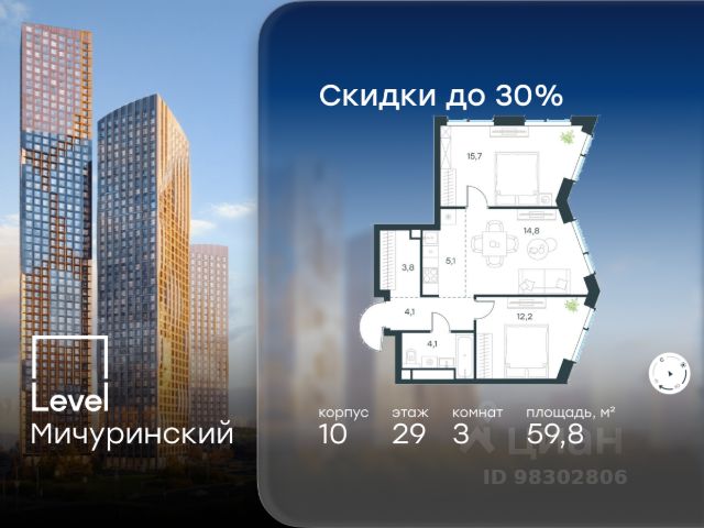О квартире Продаётся 3-комнатная квартира общей площадью 83.1 кв.м. без отделки. Квартира расположена на 2 этаже корпуса 5.7 в жилом комплексе бизнес-класса "Среда на Лобачевского" в пешей доступности от метро "Аминьевская". О жилом комплексе "Среда на Лобачевского" полностью соответствует критериям современного жилого пространства. Взяв за основу рациональный подход, мы гармонично соединили дизайн, актуальные тренды и функциональность. Продуманный современный экстерьер и функциональные планировки внутри, приватные пространства и разнообразные досуговые зоны для каждого члена семьи — все это "Среда на Лобачевского". Инфраструктура Район отлично развит и наполнен жизнью, здесь уже есть вся необходимая инфраструктура — детские сады, школы, медучреждения, торговые центры, благоустроены парки для прогулок и отдыха, удобен и легкодоступен городской транспорт. Рядом расположены учебные корпуса крупных университетов — МГУ, МГИМО и РАНХиГС. Школы и детские сады в районе занимают высокие позиции в городских рейтингах, поэтому вам не придется беспокоиться о качестве образования детей. Как и об отдыхе: поблизости расположены живописные пруды, реки и парки. Это Парк Олимпийской деревни, Парк имени 50-летия Октября, Мещерский парк и Очаковские пруды. Теперь поставить галочки в еженедельном чек-листе "спорт-прогулки-встречи с друзьями" можно, не покидая любимый район. Особенности Особое внимание в проекте уделяется созданию функциональных пространств не только внутри дома, но и за его пределами. В ландшафтном парке "Среды на Лобачевского" расположены крытые зоны для спокойного времяпровождения, места для активного отдыха и спорта, коворкинг, соседский комьюнити-центр, водные объекты. —Ландшафтный парк во дворе. —Водный сад с зонами отдыха. —Зоны коворкинга. —Дизайнерские гранд-лобби. —Бесключевой доступ. —Подземный паркинг. 3-комнатная квартира первичка в районе Очаково-Матвеевское в Москве.