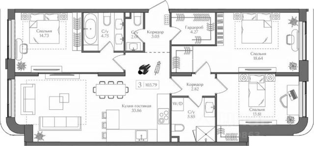 • ✓ В базе Циан 3 3-комнатных квартир первичка на проезде Проектируемый № 789 в Москве.