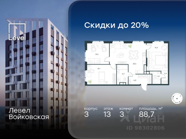 Прямая продажа от застройщика. Продаётся 3-комнатная квартира общей площадью 77.26 м² с предчистовой отделкой в ЖК Сити Бэй, квартале Норс, на 31-м этаже 48 этажного дома. Концепция жилого комплекса Сити Бэй - настоящий город в городе с отлично развитой инфраструктурой и собственной благоустроенной набережной. На территории жилого комплекса расположено пять кварталов - Атлантик, Пасифик, Индиан, Норс, Клиф. Жилой квартал Сити Бэй отличается оригинальной концепцией и выделяется среди других проектов такими характеристиками как: - Архитектура, - Виды из окон, - Природное окружение, вызывая гордость у жителей и восхищение у прохожих. Вся жизнь района Покровское-Стрешнево строится вокруг водных объектов: - Пойма реки Сходни с уникальной экосистемой, - Речка Химка и Химкинское водохранилище, - Москва-река, - Канал имени Москвы. Кругом вода, и местные с удовольствием этим пользуются. А сразу за рекой - центр водного спорта в Строгино с вейк-парком и яхт-Клубами. Помимо воды, здесь очень много зелени: - Рядом Сходненский ковш памятник природы, естественный амфитеатр глубиной 40 метров; - Парк при усадьбе Братцево с фруктовым садом; - Дубовая роща "Маяк", - Алешкинский лес; - Лесопарк Покровское-Стрешнево с пляжами и бобрами. Главные транспортные артерии района: - Волоколамское шоссе, - Таганско-Краснопресненская линия метро и МЦД-2. Всего за 20 минут можно добраться до центра на машине или метро, а МЦД связывает ЖК Сити Бэй с северными, восточными и юго-восточными районами. Компания MR предлагает своим клиентам специальные условия приобретения квартир в рамках программ ипотечного кредитования от банков-партнеров.